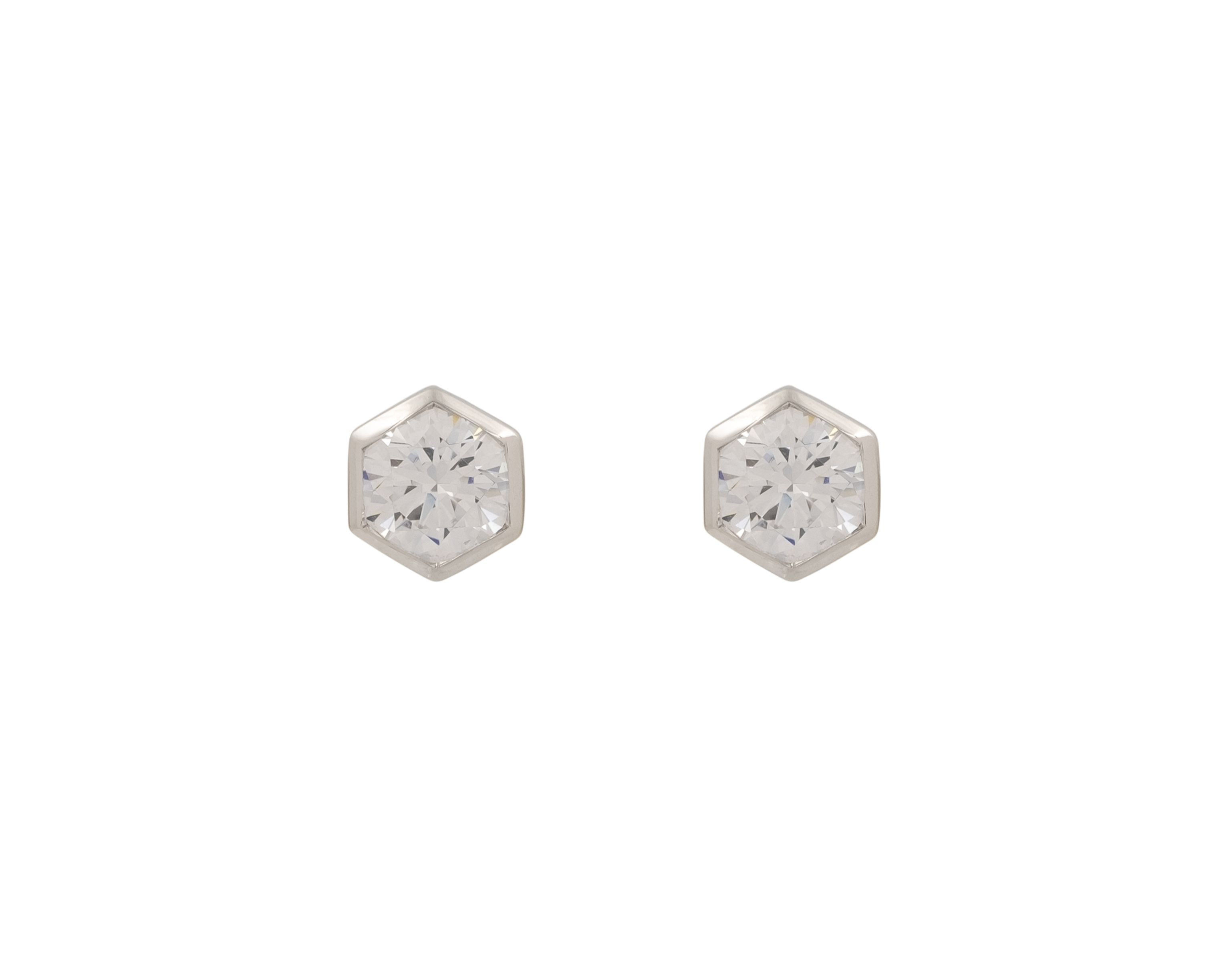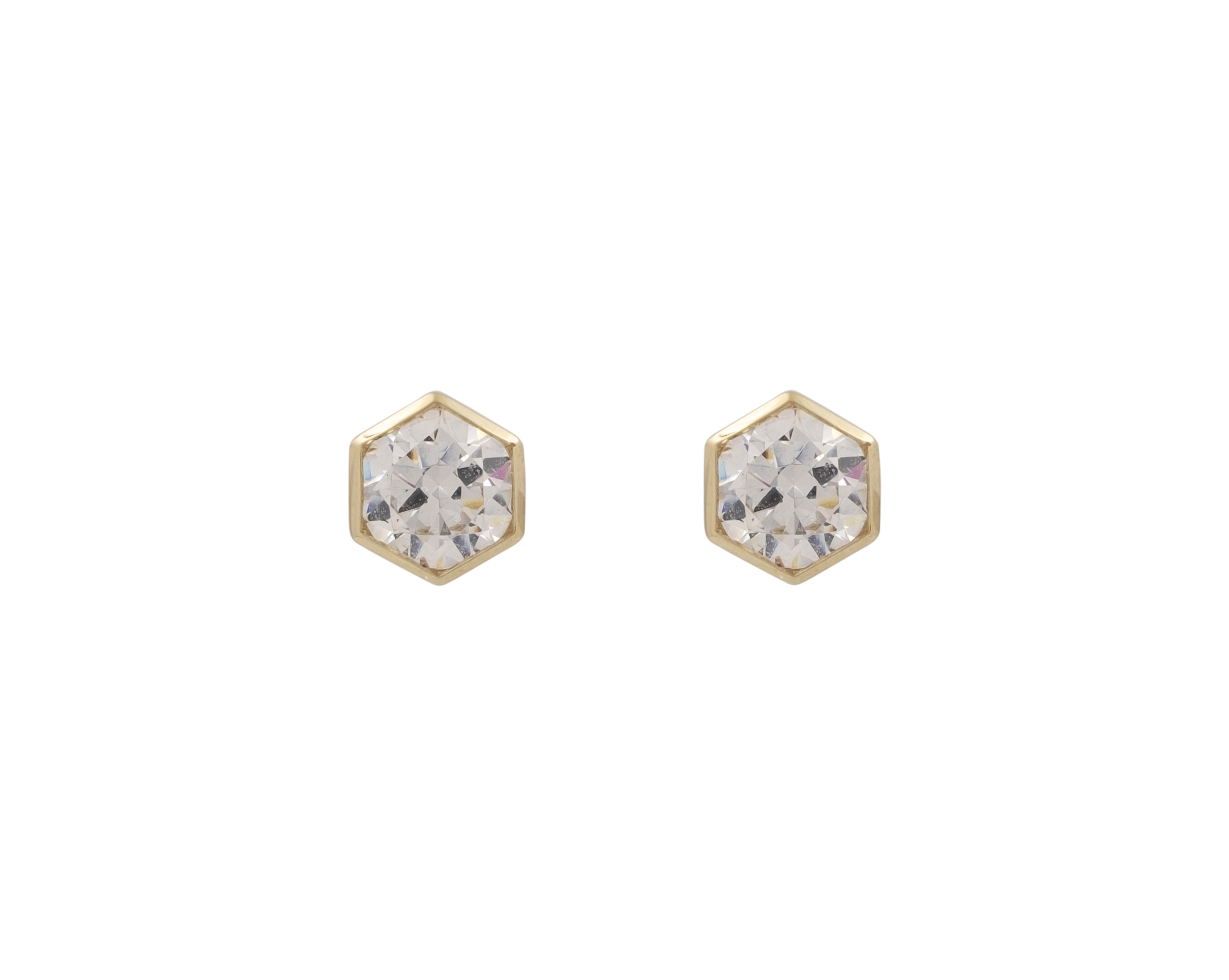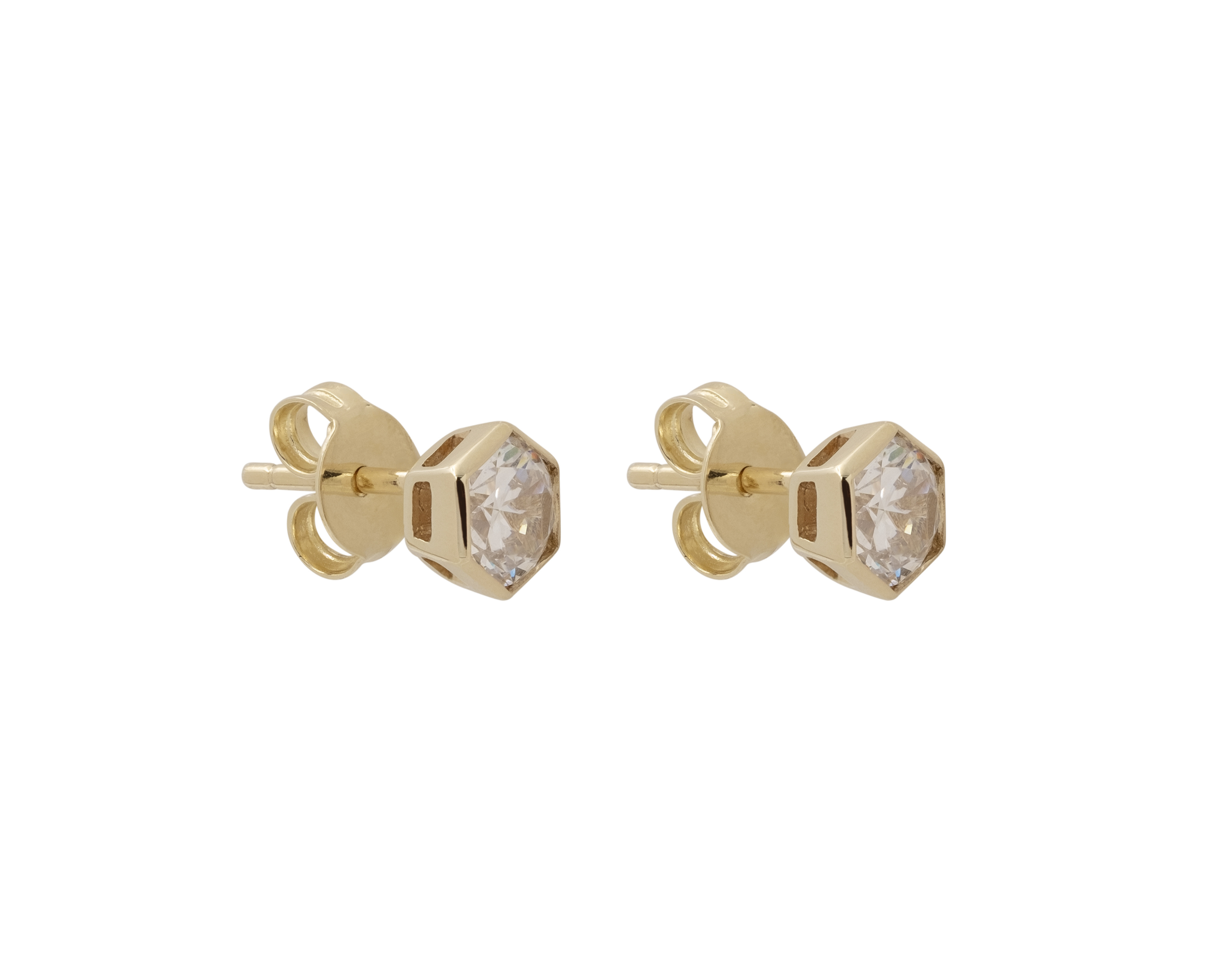 Upgrade your look with our rounded-edge bezel studs. A modern take on a classic design, these rounded earrings feature six sided edges and a unique bezel setting. Available in 10k yellow or white gold, youโ€™ll be sure to make a statement wherever you go.