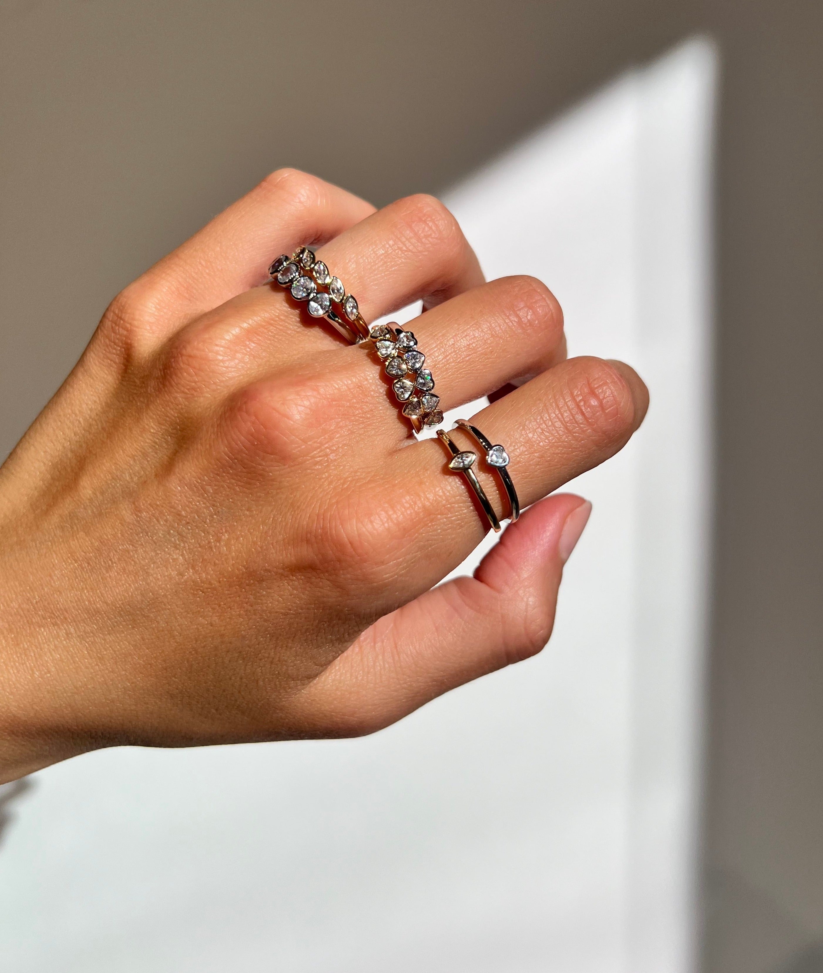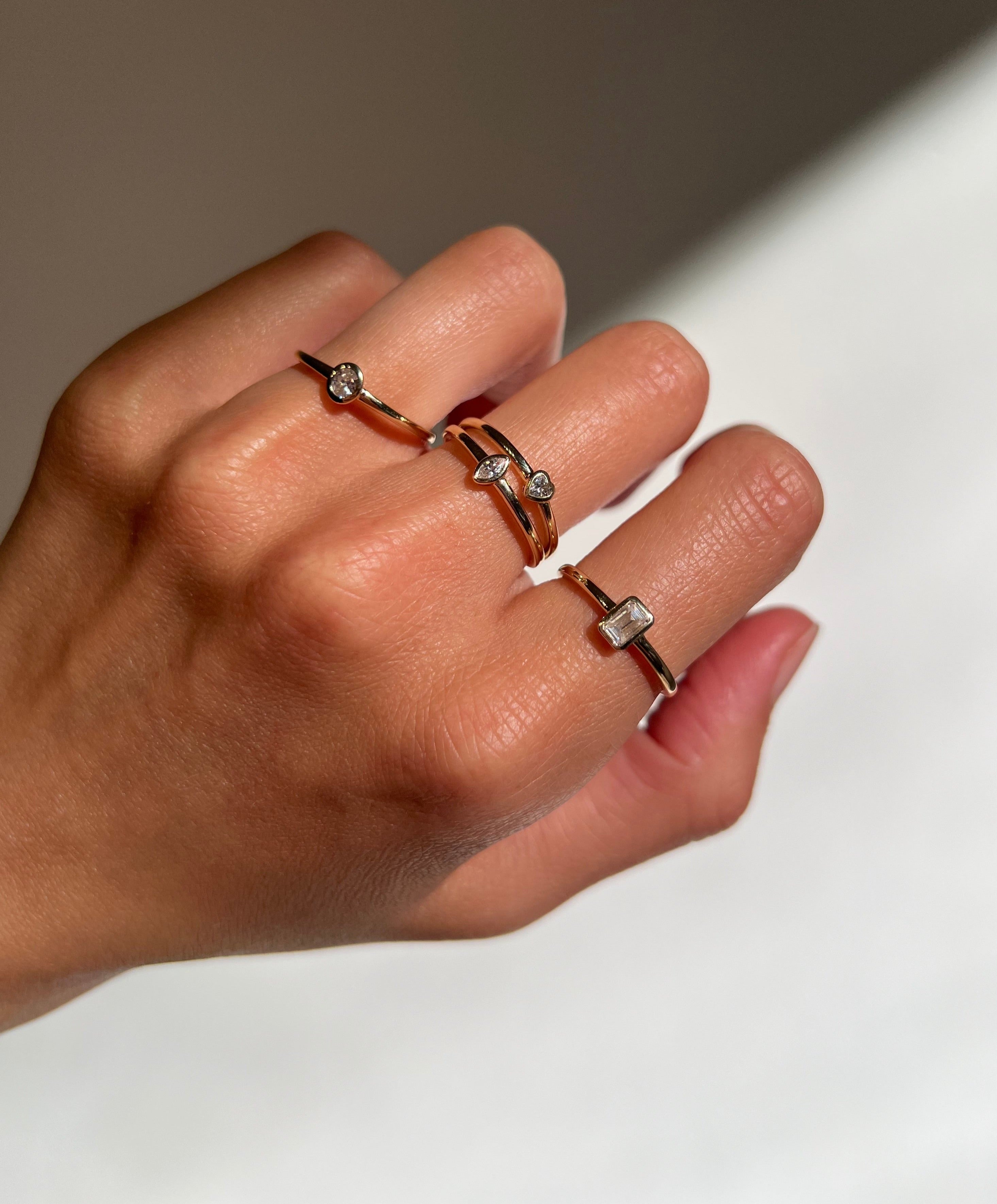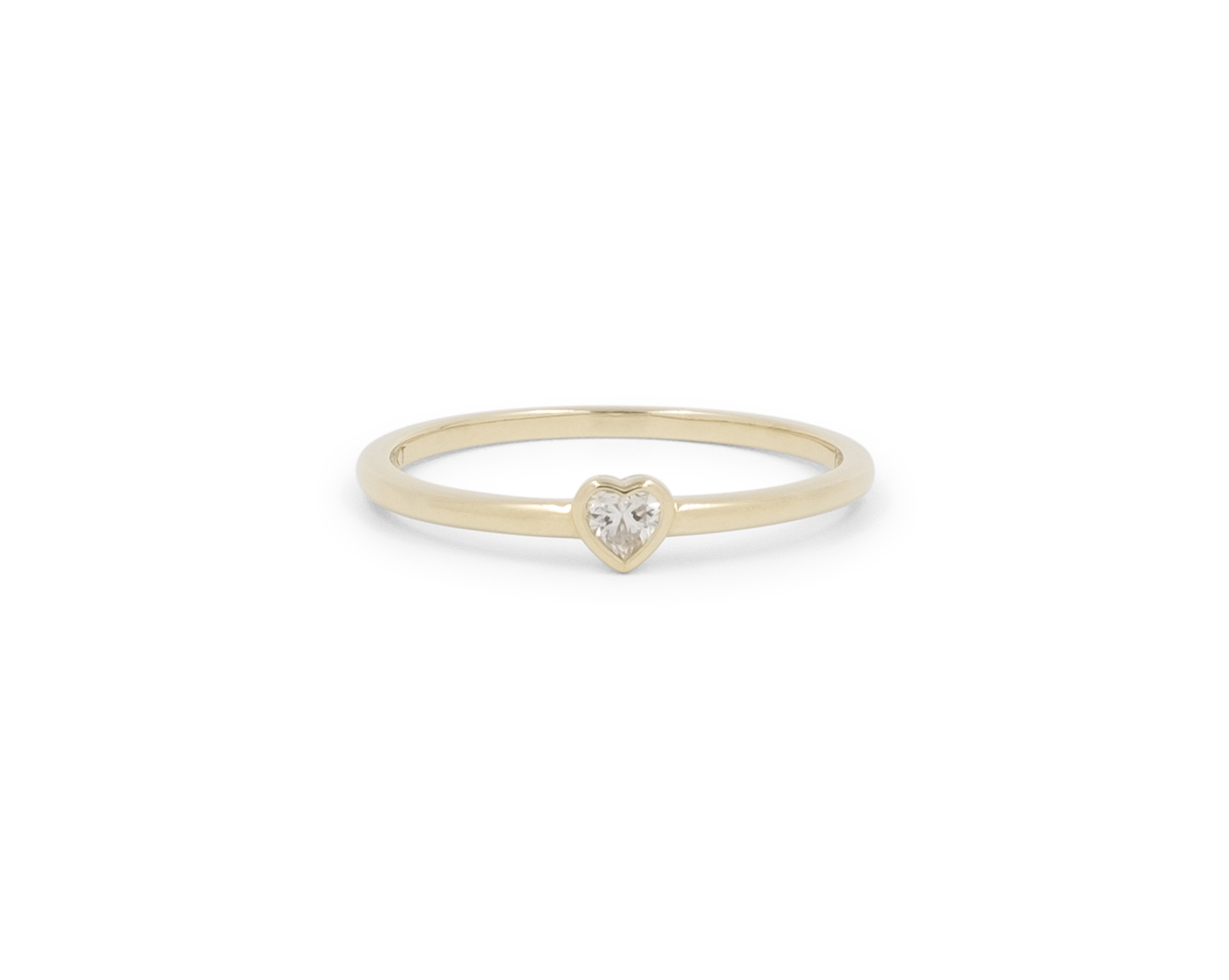 Meet the Dainty Heart Stacker a dainty 1.5mm band, crafted in 10k yellow or white gold. Featuring a small heart center stone perfect for stacking or adding a touch of minimalist style to your look. Stack it up or keep it simple, either way, this ring is sure to steal your heart.