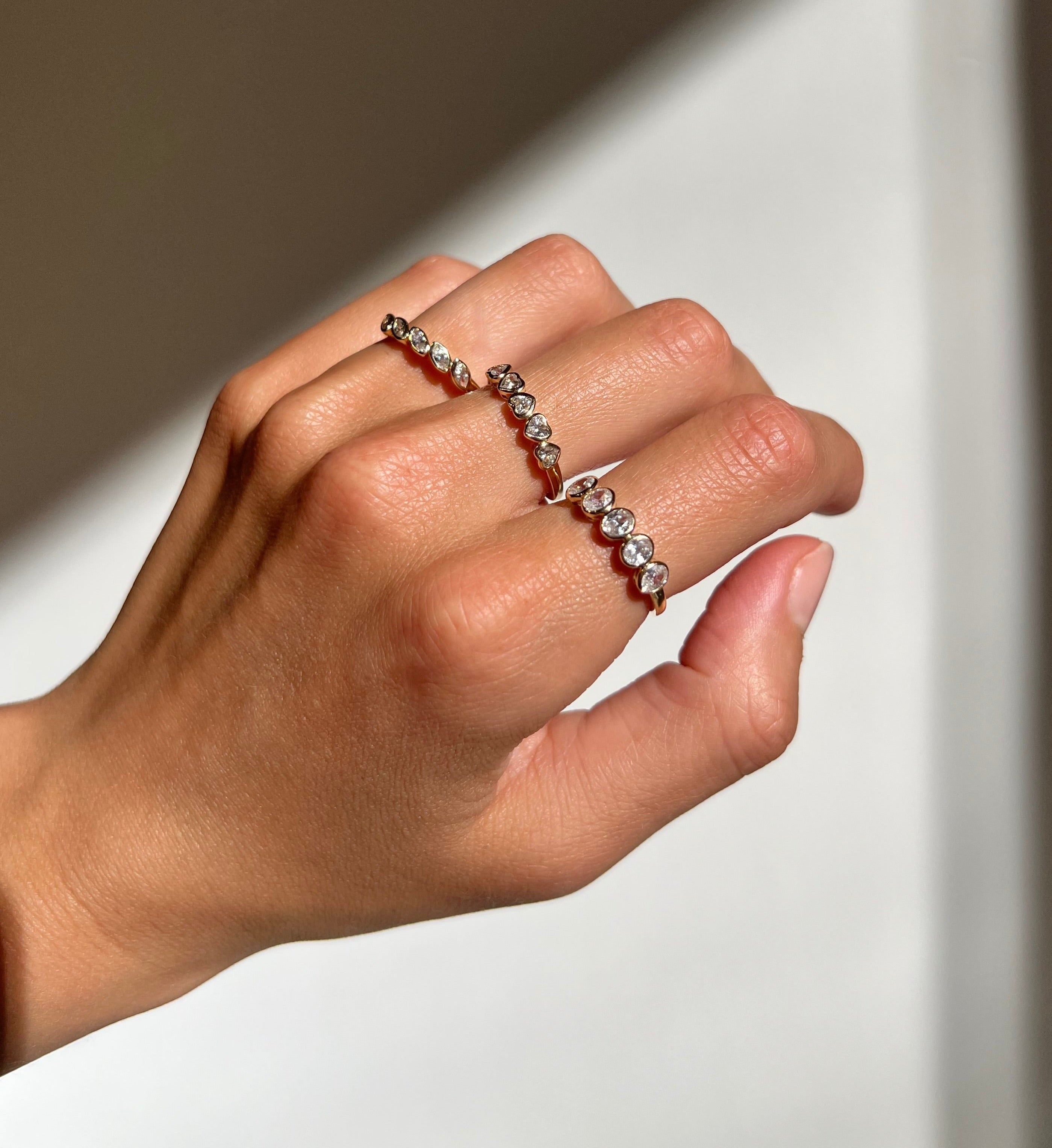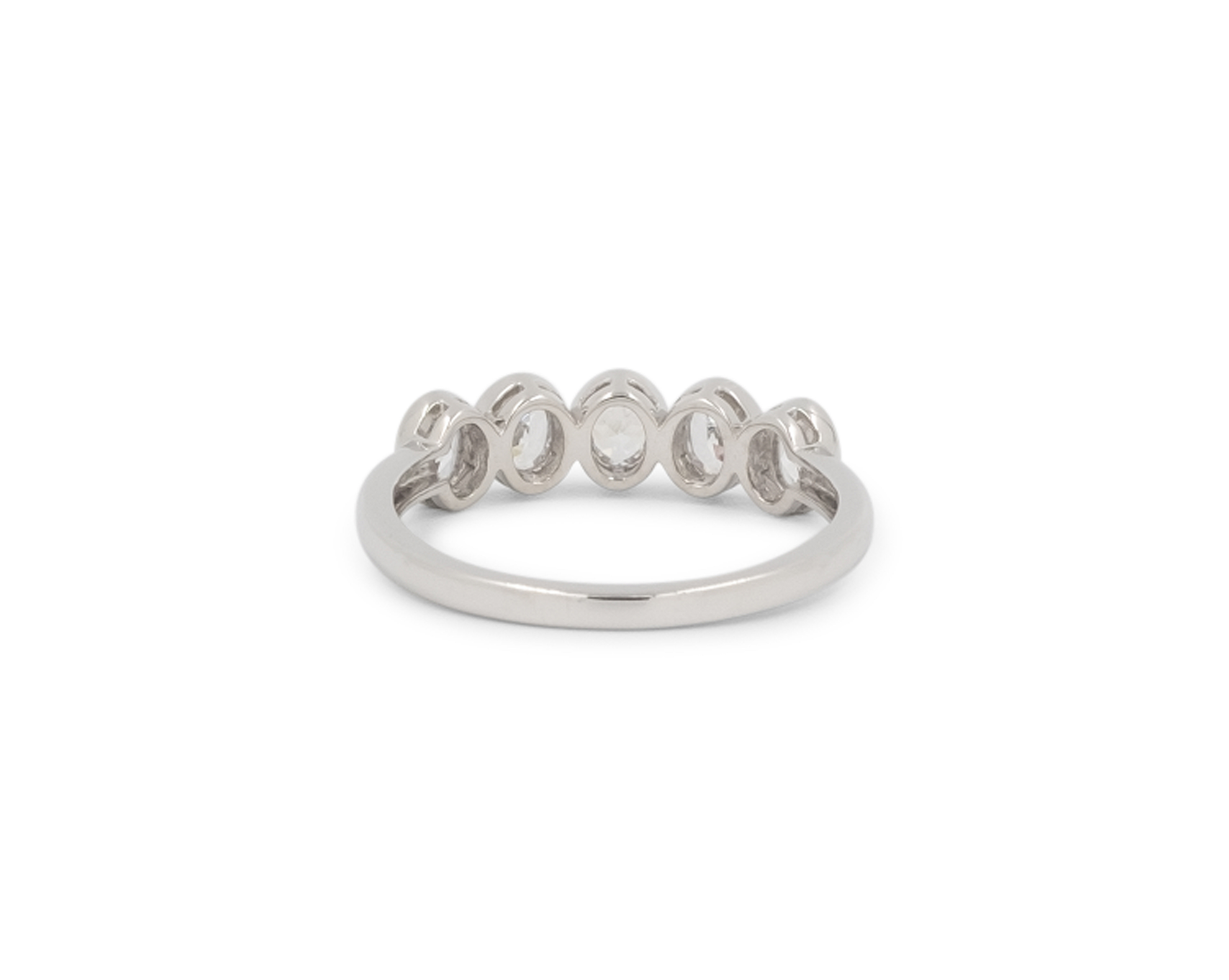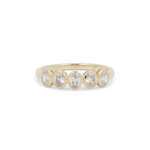 Introducing the Multi-Oval Stacker - a classic 1.5mm band that comes in your choice of 10k yellow or white gold and highlights five oval-cut stones. Secured in a bezel setting, this classic and unique style adds another level of sophistication.