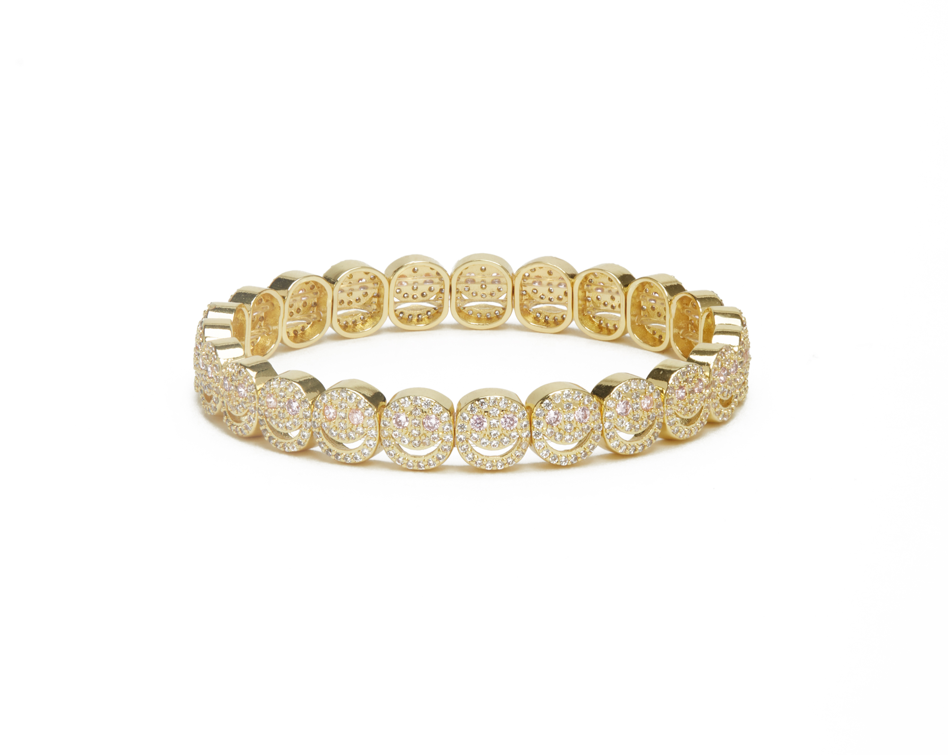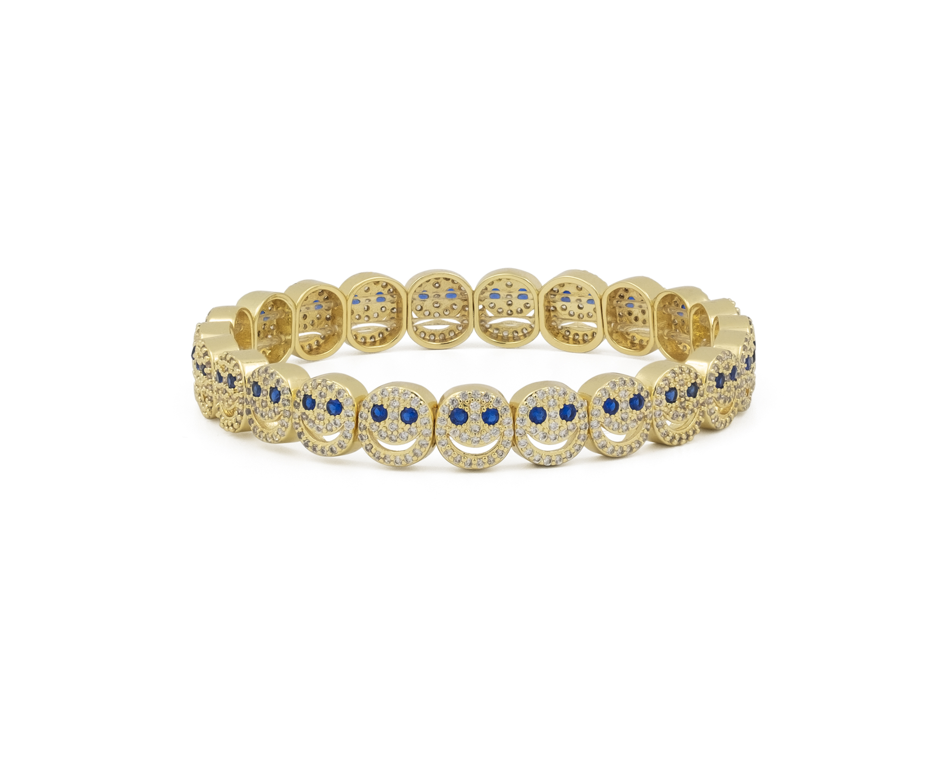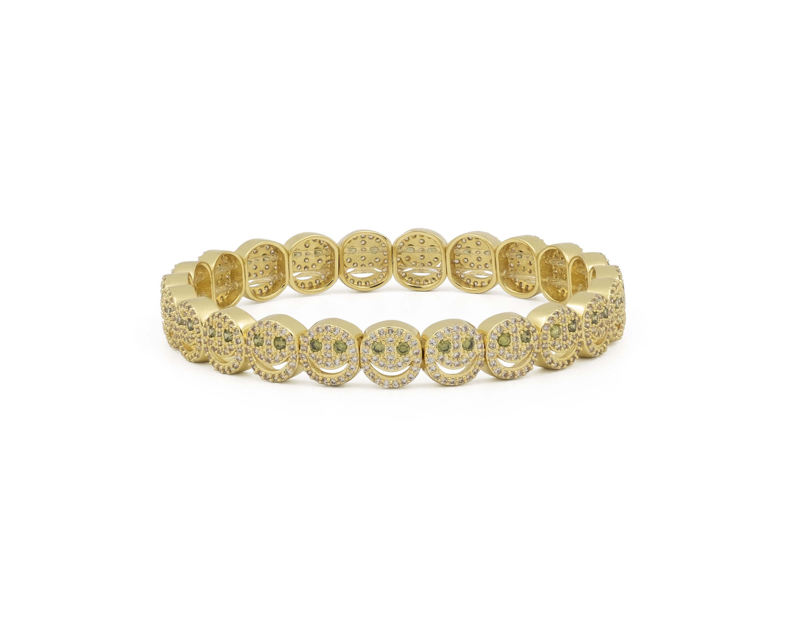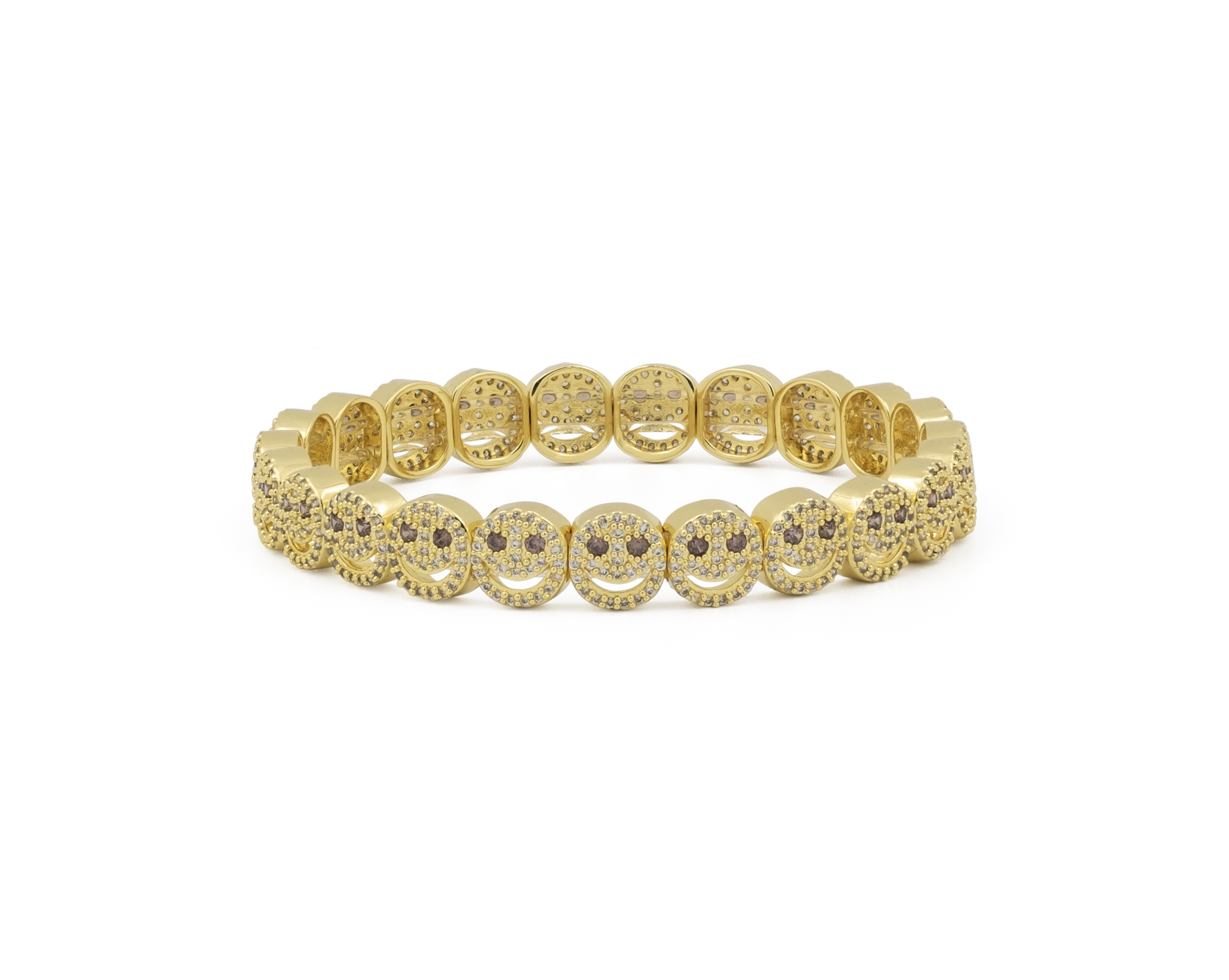 Our signature gold happy face bracelet isn’t just jewelry - it’s joy, wrapped on your wrist. Plated in rich gold and handset with AAA cubic zirconia, this bracelet adds instant personality (and positivity) to any stack. It’s playful. It’s polished. And it layers like a dream. Whether you're pairing it with your favorite stackable gold bracelets or letting it shine solo, the smiley charm brings that pop of fun your wrist didn’t know it needed. Looking for a gold charm bracelet that actually feels like you? This one’s got it all: sparkle, statement, and seriously good vibes. Call it a happy face bracelet, smiley jewelry, or your new everyday favorite - the energy stays the same. Style tip: Layer it with dainty gold bracelets or a chunky chain for that unmistakable LG wrist stack.