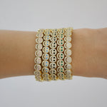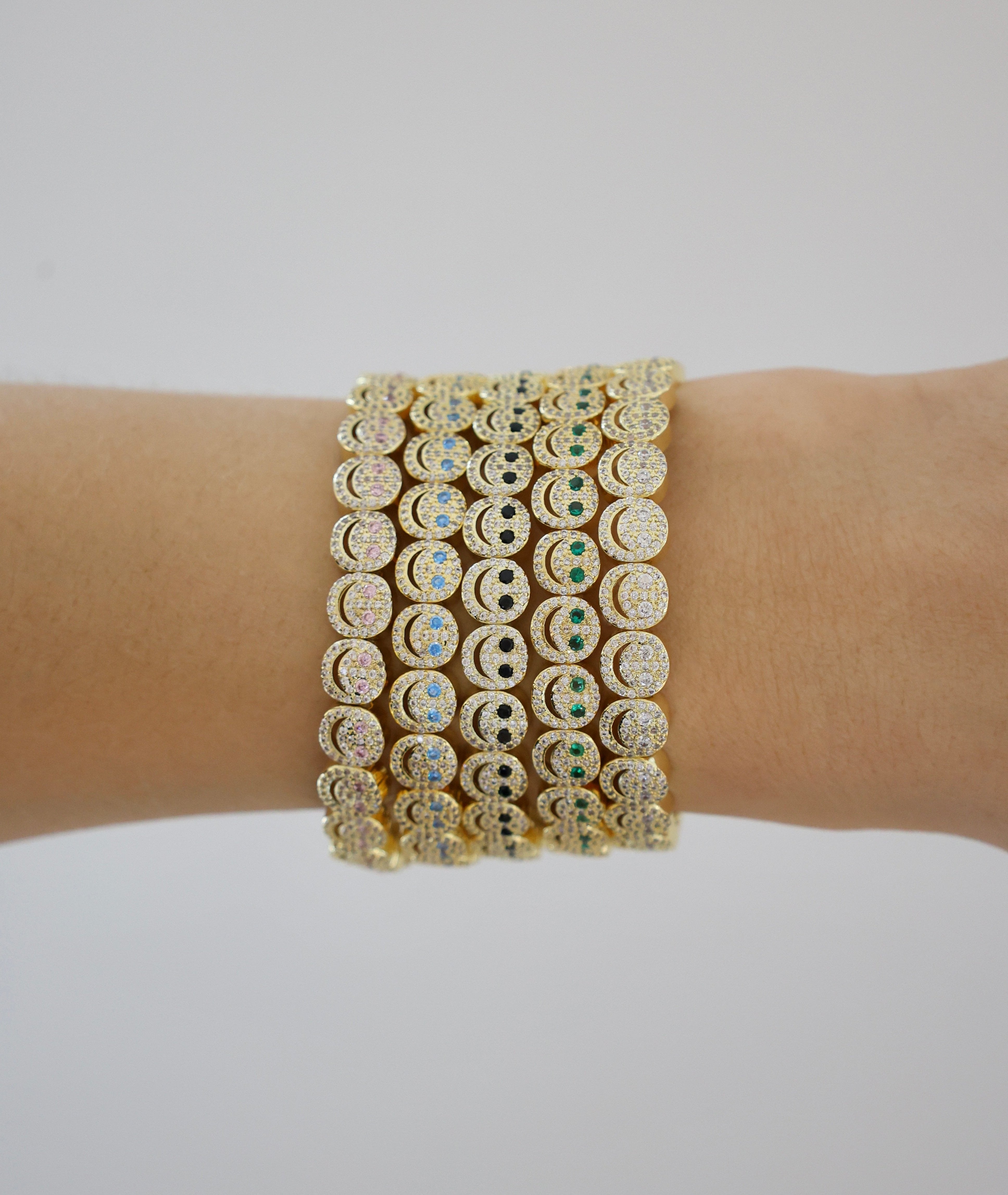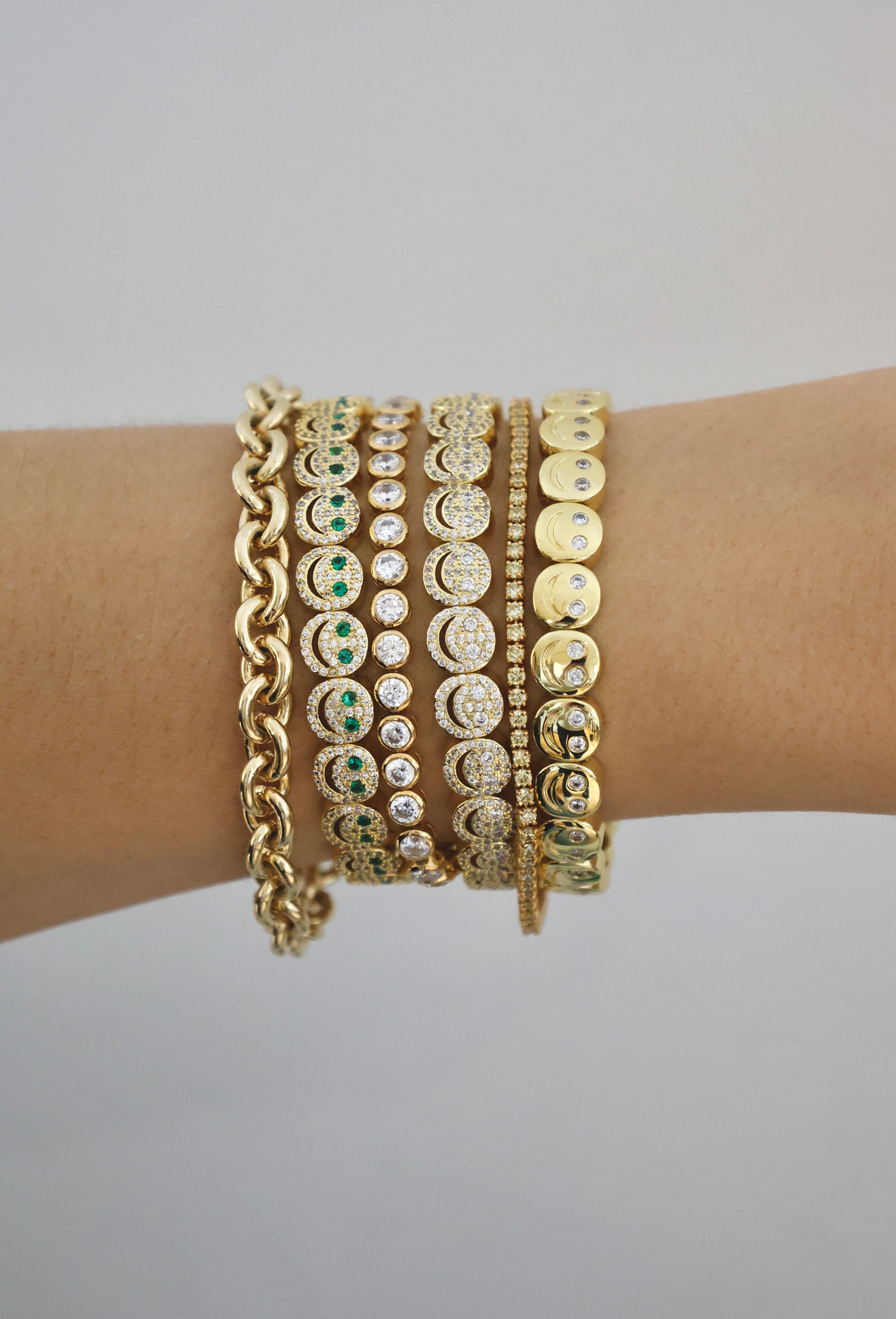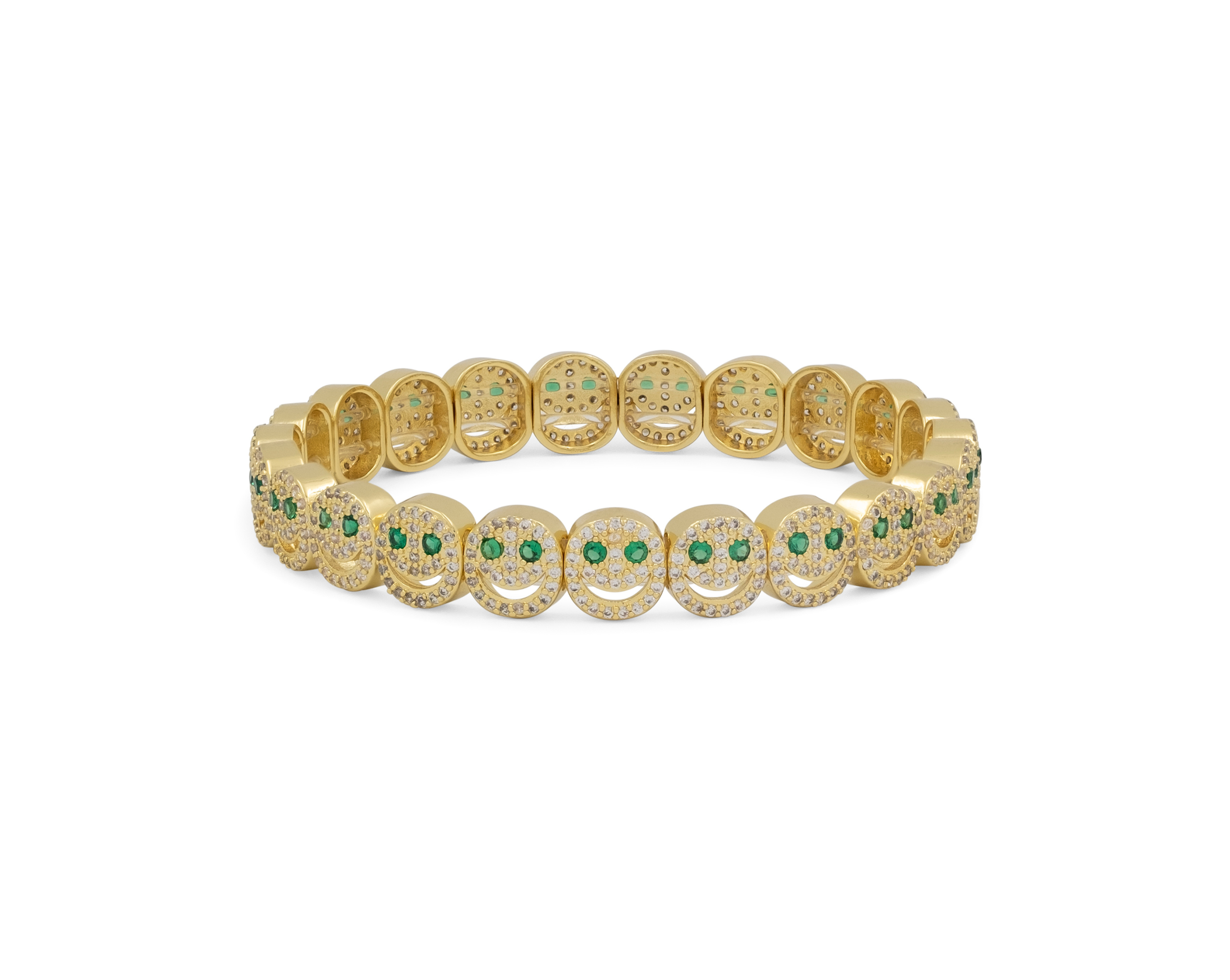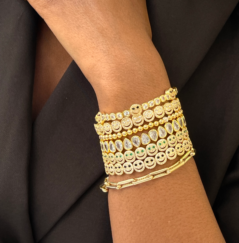 Our signature gold happy face bracelet isn’t just jewelry - it’s joy, wrapped on your wrist. Plated in rich gold and handset with AAA cubic zirconia, this bracelet adds instant personality (and positivity) to any stack. It’s playful. It’s polished. And it layers like a dream. Whether you're pairing it with your favorite stackable gold bracelets or letting it shine solo, the smiley charm brings that pop of fun your wrist didn’t know it needed. Looking for a gold charm bracelet that actually feels like you? This one’s got it all: sparkle, statement, and seriously good vibes. Call it a happy face bracelet, smiley jewelry, or your new everyday favorite - the energy stays the same. Style tip: Layer it with dainty gold bracelets or a chunky chain for that unmistakable LG wrist stack.