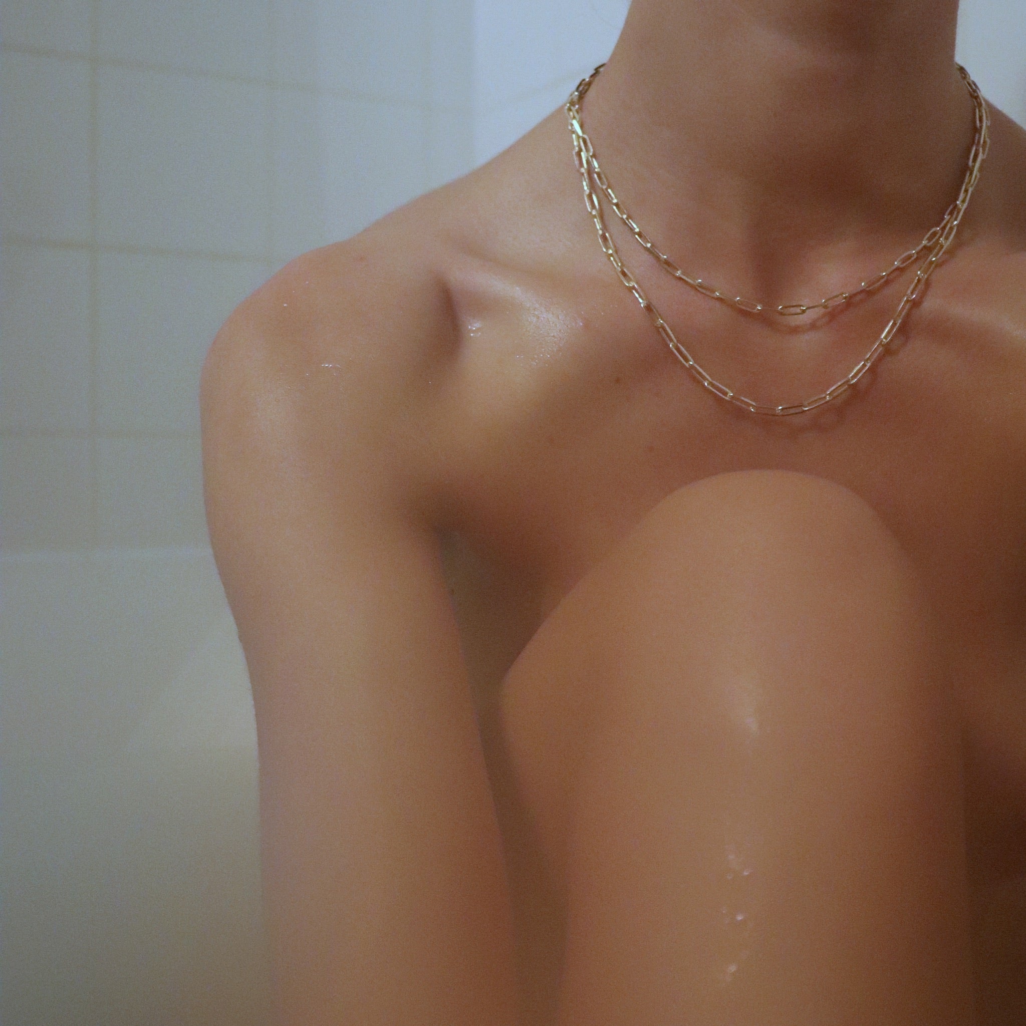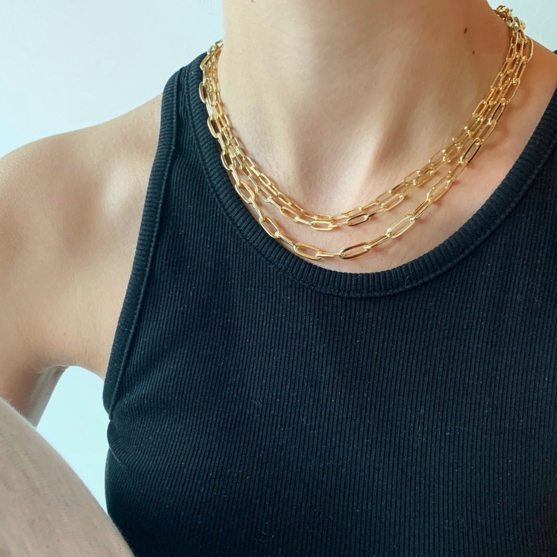Theย smallest of 3 sizes in our signature Gold Vermeilย everyday paperclip chain necklace.