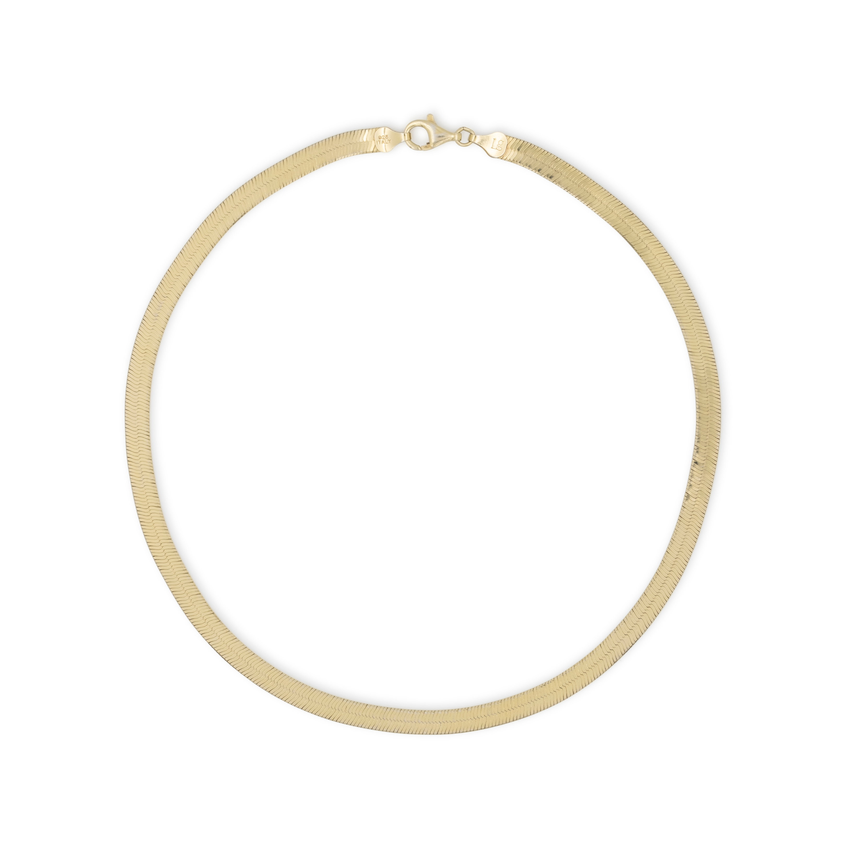 Our statement gold vermeil herringbone necklace is delicately comprised of tightly connected thin and flat metal gold links that instantly elevate your look. A chic and timeless essential perfect for every day on its own or layer in both 16" and 18". Always lay herringbone chains flat when not in use and remove when sleeping to reduce kinking.
