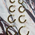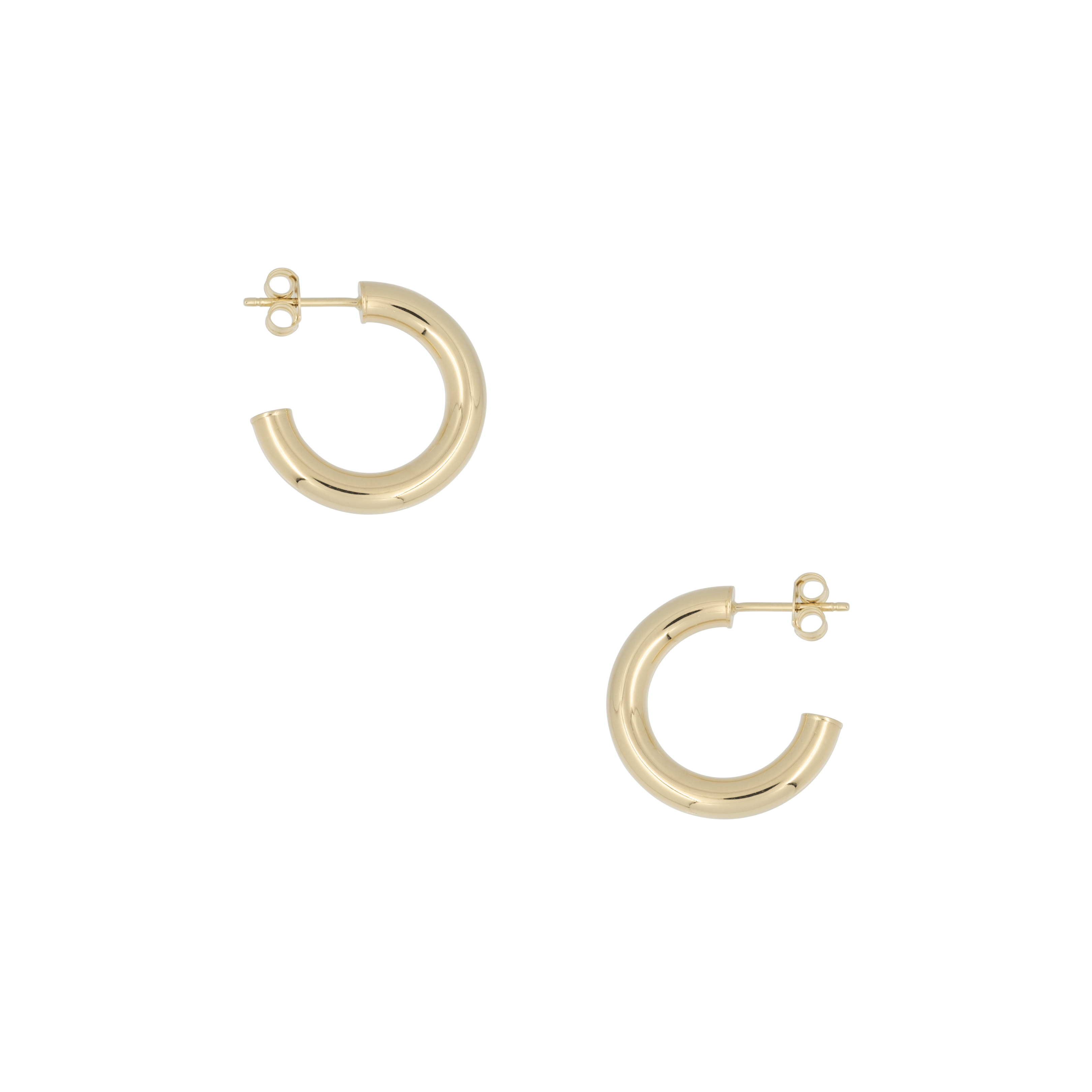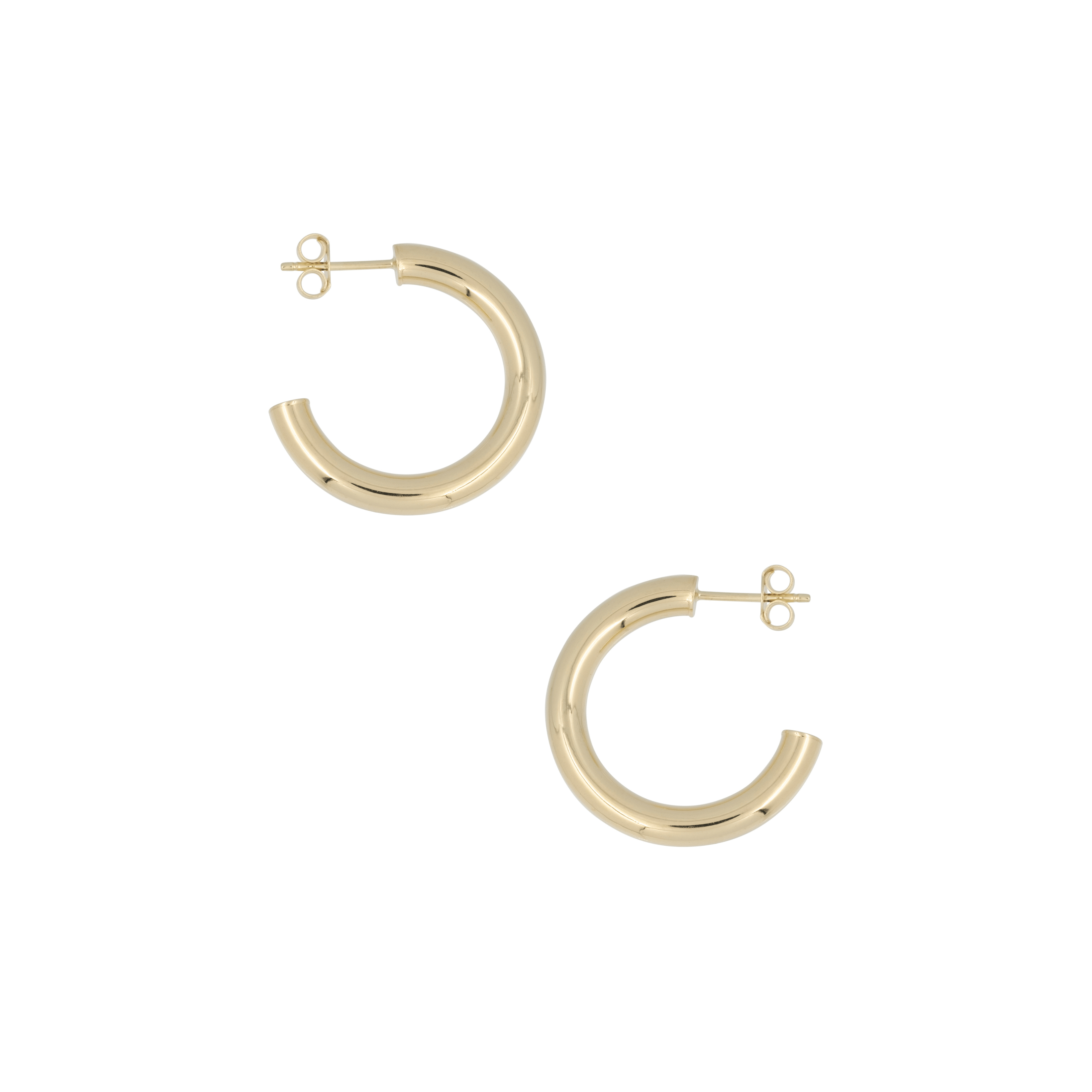 A staple in any wardrobe for any occasion, you can't go wrong with classic hoops.ย Crafted in 14K gold, these lightweight polishedย tube hoops will instantly elevate your look.ย