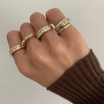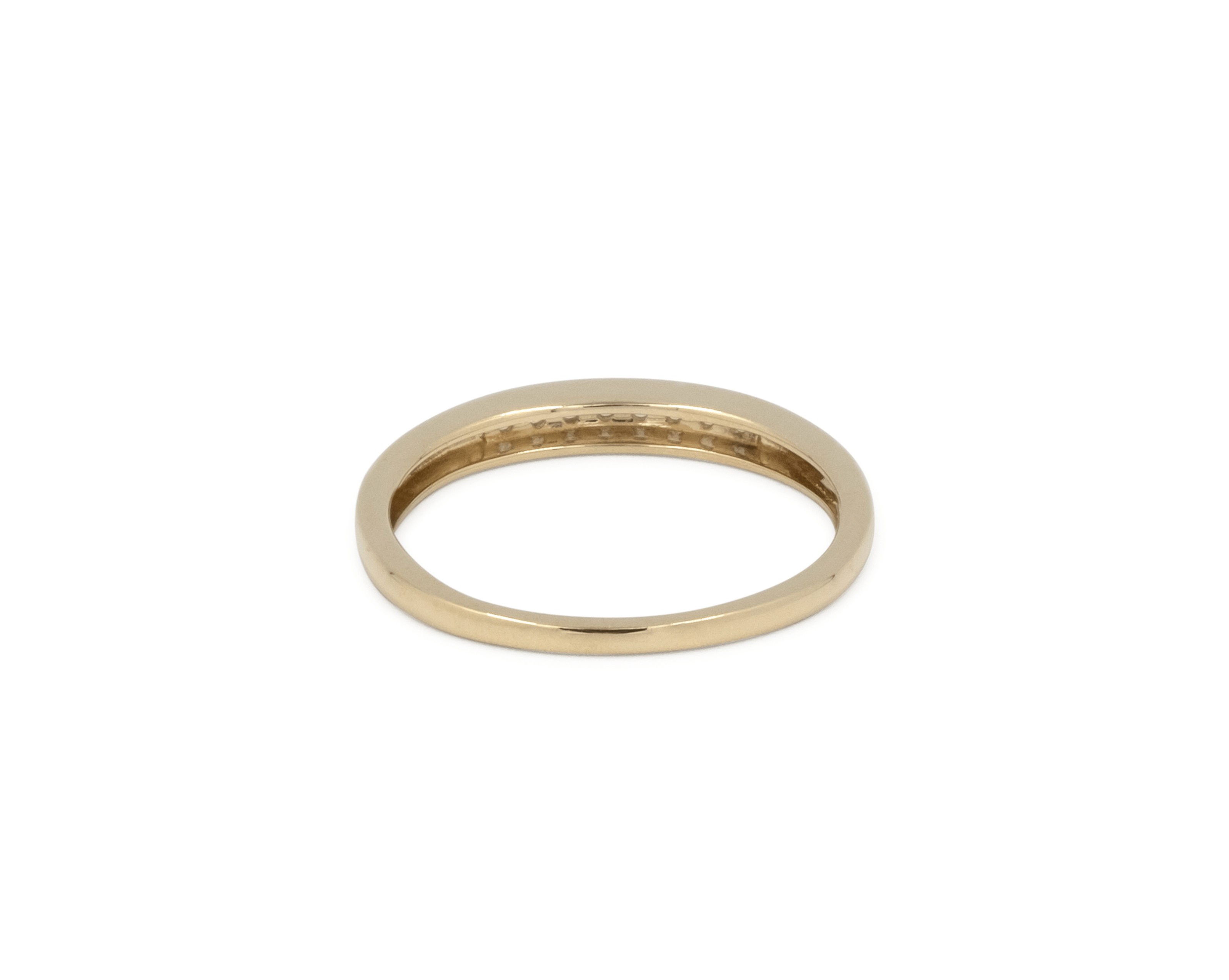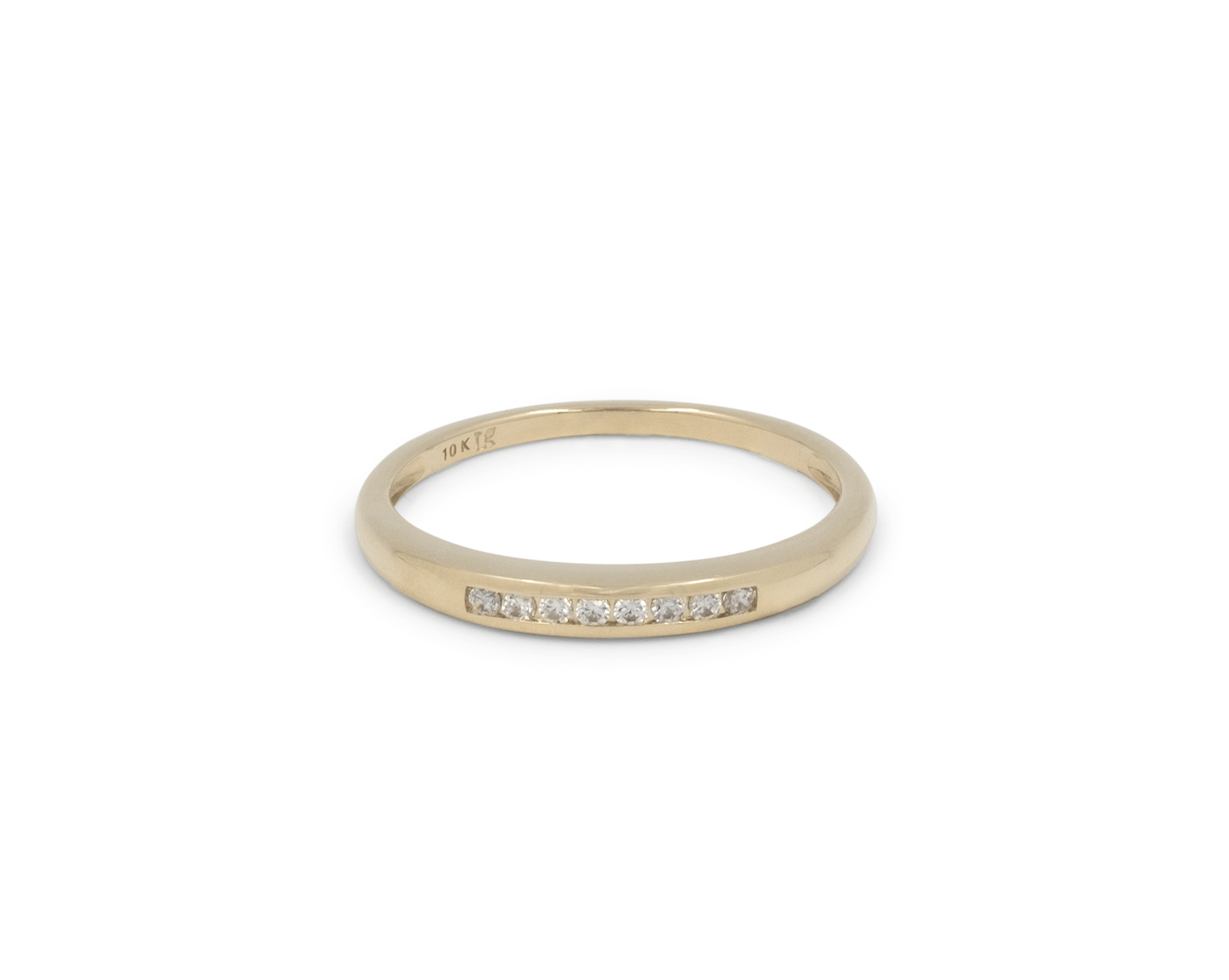 A solid gold stacker ring with delicate round cut cubic zirconias. Perfect on its own, but even better together. Mix and match with other LG rings.