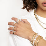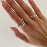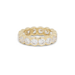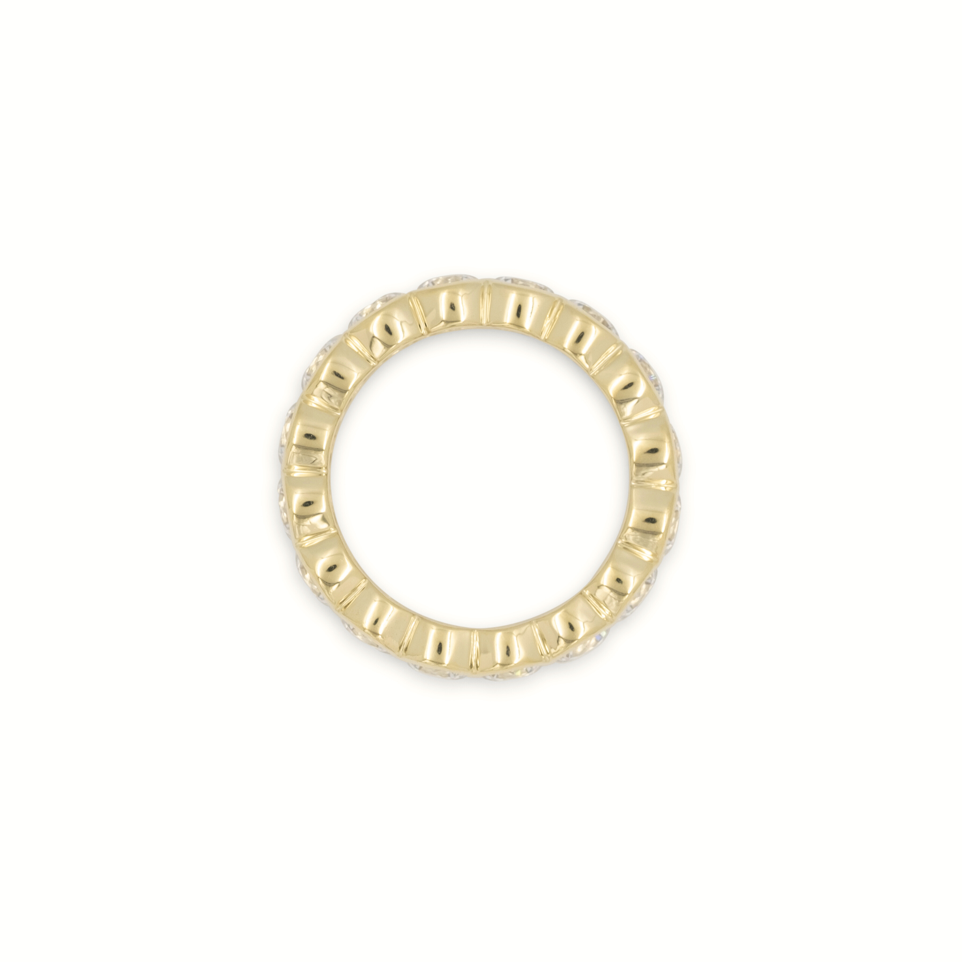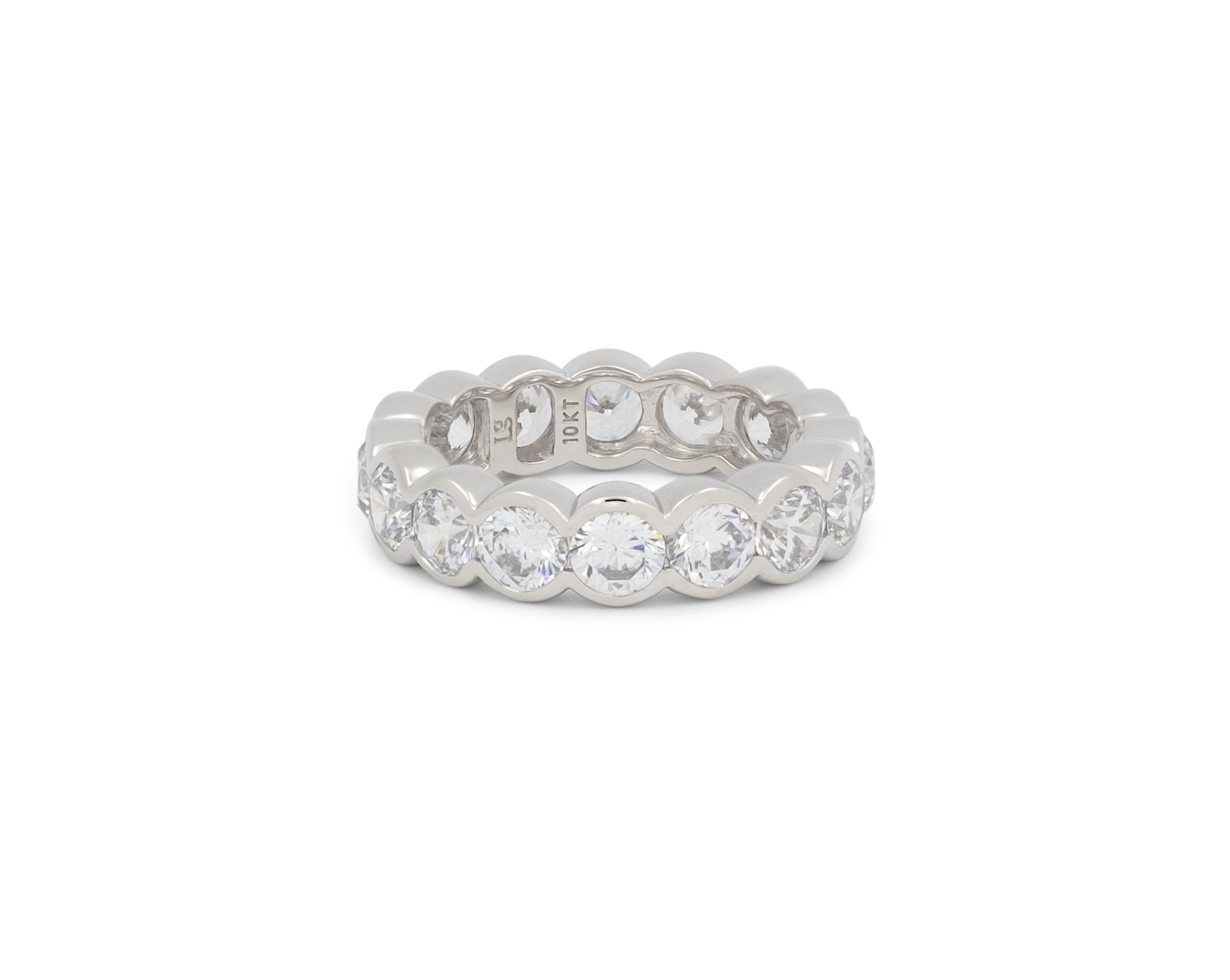 The Scalloped Eternity Ring is handcrafted in 10K gold with as many as 16 sparkling cubic zirconia stones. Secured in a bezel setting for a unique and timeless design, this piece will change the way you carry yourselfโ€” think ultimate sophistication.