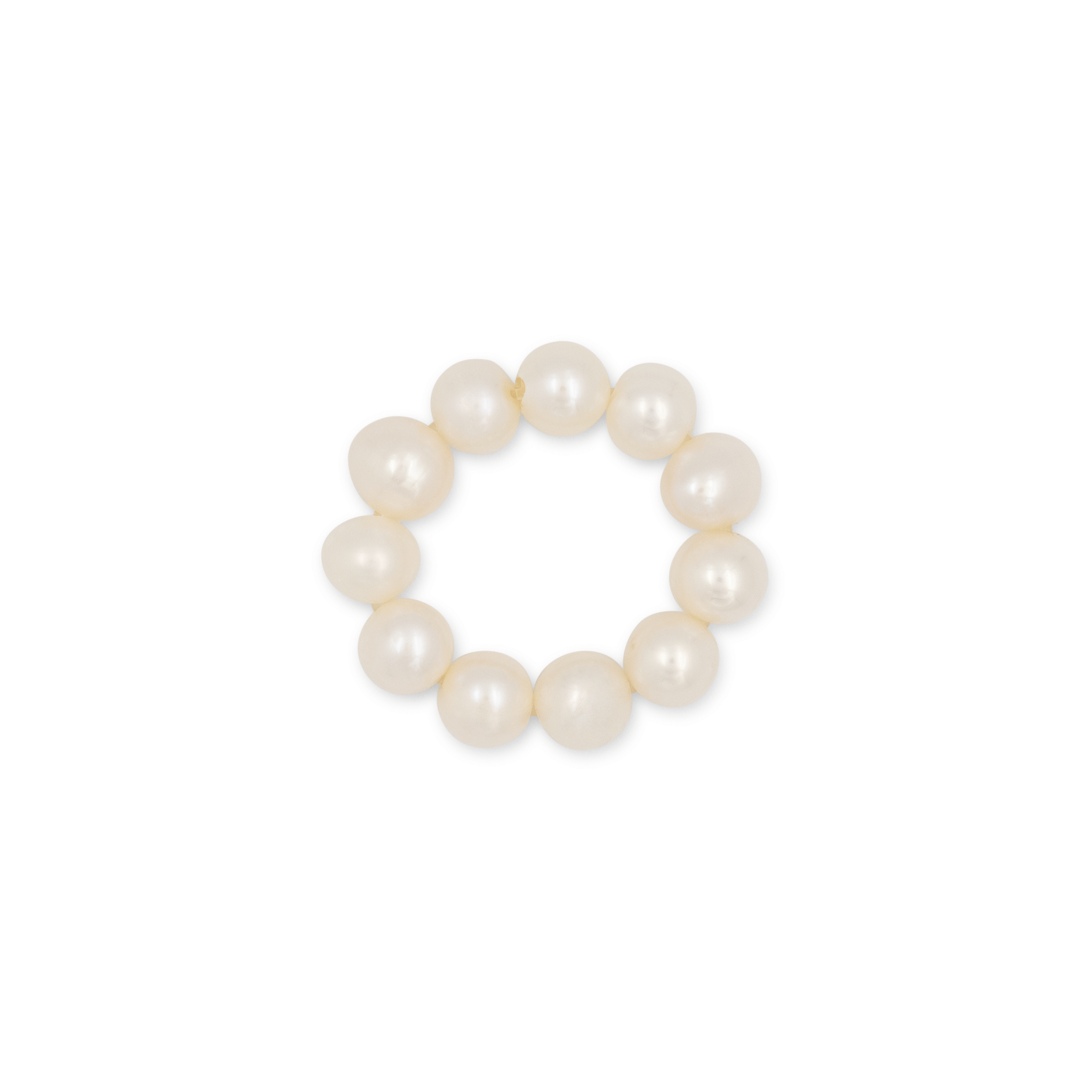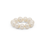 An elegant and fun ring comprised of round fresh water pearls. Simply stunning the way they naturally form, pearls are a timeless, organic and environmentally friendly gem. Perfect for everyday wear and stacking with other rings. Made with strong stretch and can be worn in a range of sizes. Every pearl is unique.