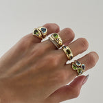From the archives straight to your ring stack! This beautiful double pear shape archive ring will surely give you a bold look for your LG stack. Handcrafted in 10K gold with semi-precious gemstones.