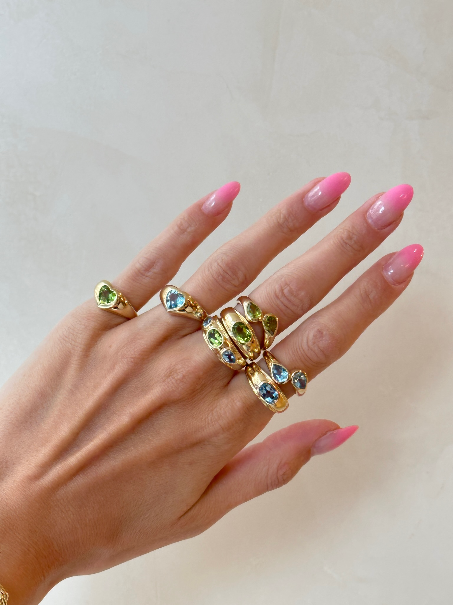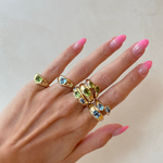 From the archives straight to your ring stack! This oval & pear shape ring will surely give you a bold look for your LG stack. Handcrafted in 10K gold with semi-precious gemstones.
