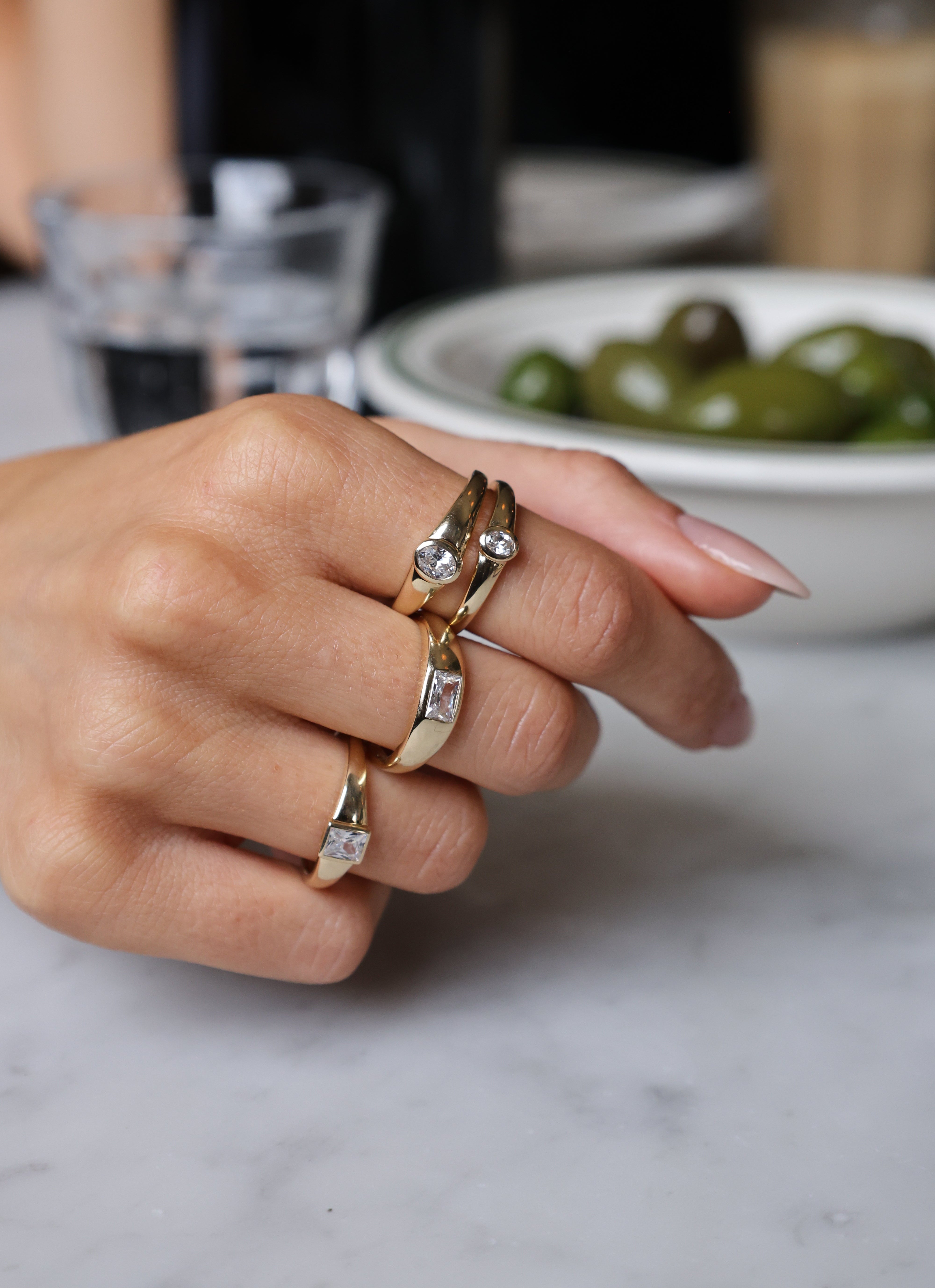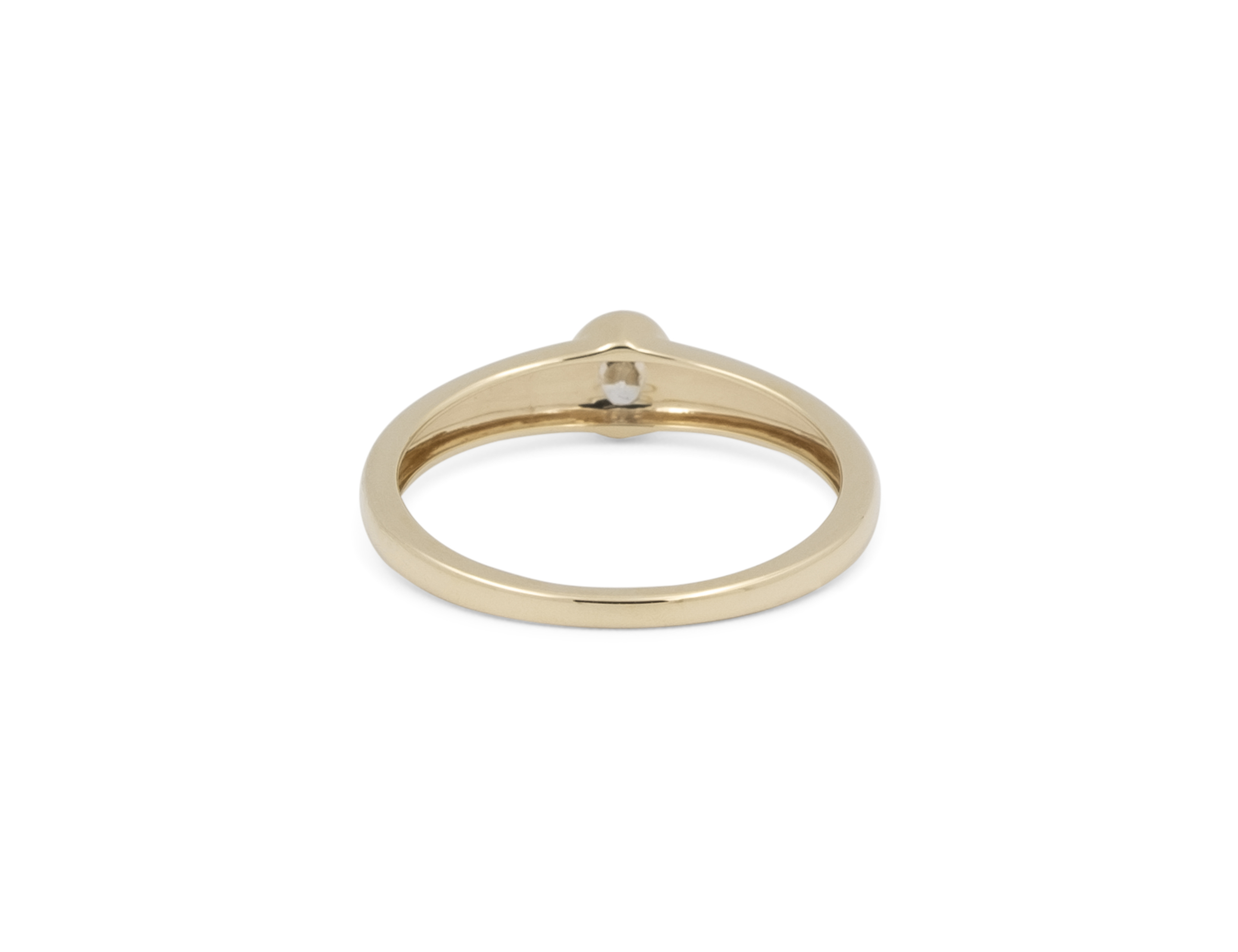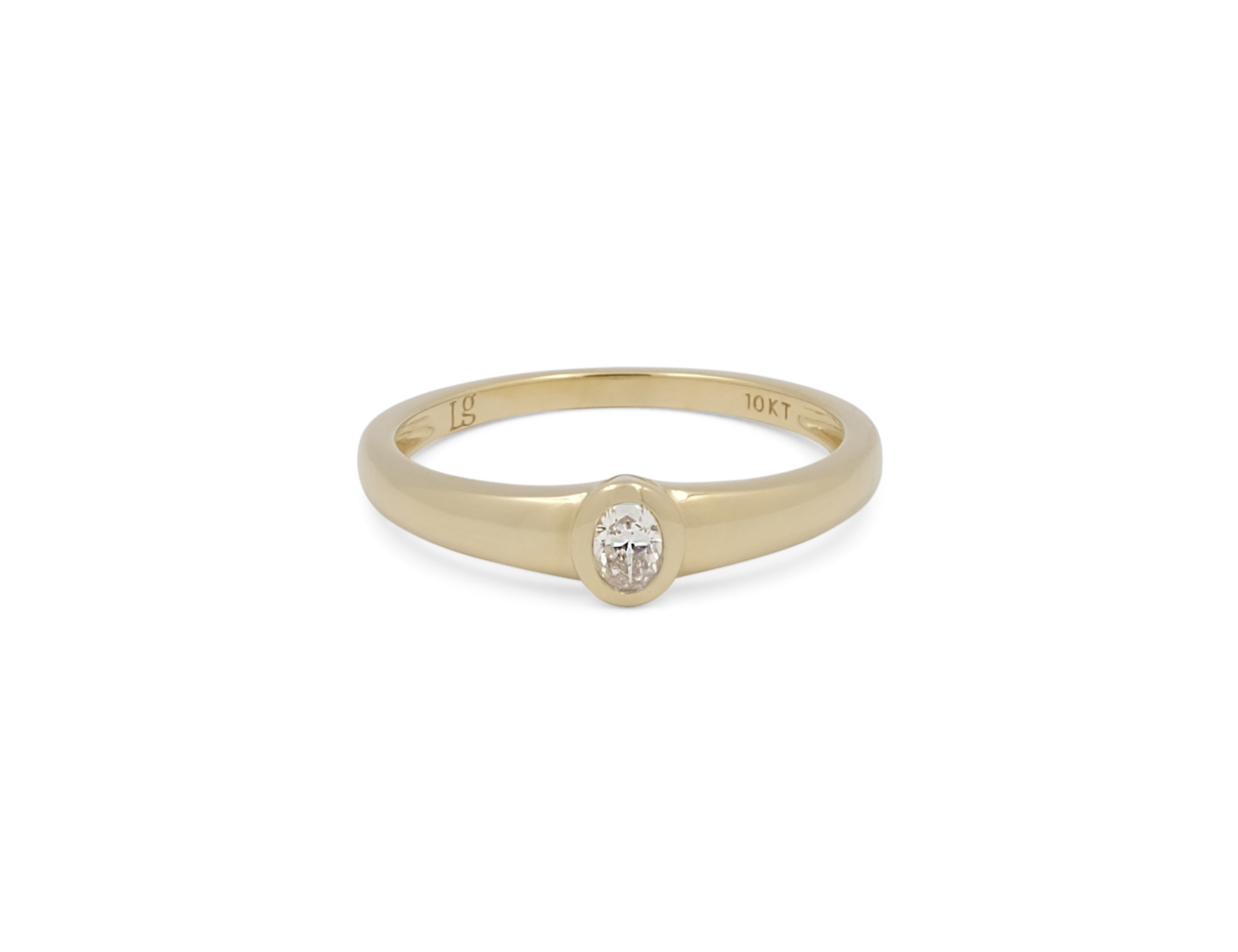 A dainty version of The Oval Dome Ring, this piece features a 4x3mm oval-cut stone in a bezel setting, nestled within a 5.5mm sculpted dome band. Crafted in 10K yellow gold and designed for those who love understated sparkle. This ring is effortlessly elegantโ€“ perfect for stacking or wearing solo for a refined, minimalist look.