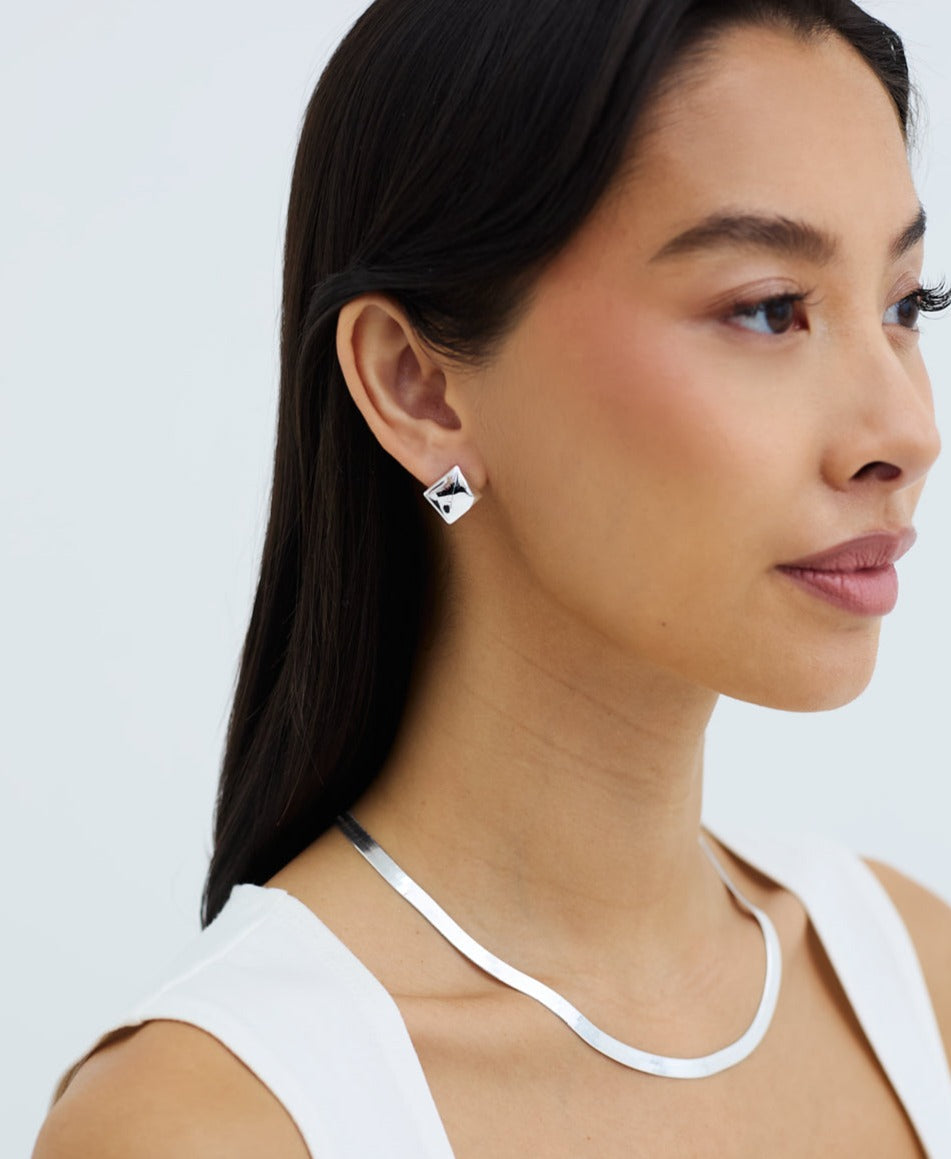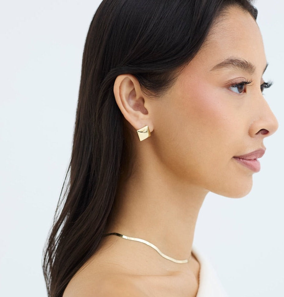 Add some edge to your look with The Mini Princess Studs. These 12x12mm earrings are perfect to elevate your everyday look and feature a corner post for a unique diagonal wear. Available in yellow gold and silver, these elevated, glossy studs will make you look and feel your best.ย