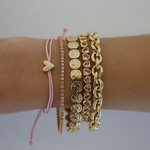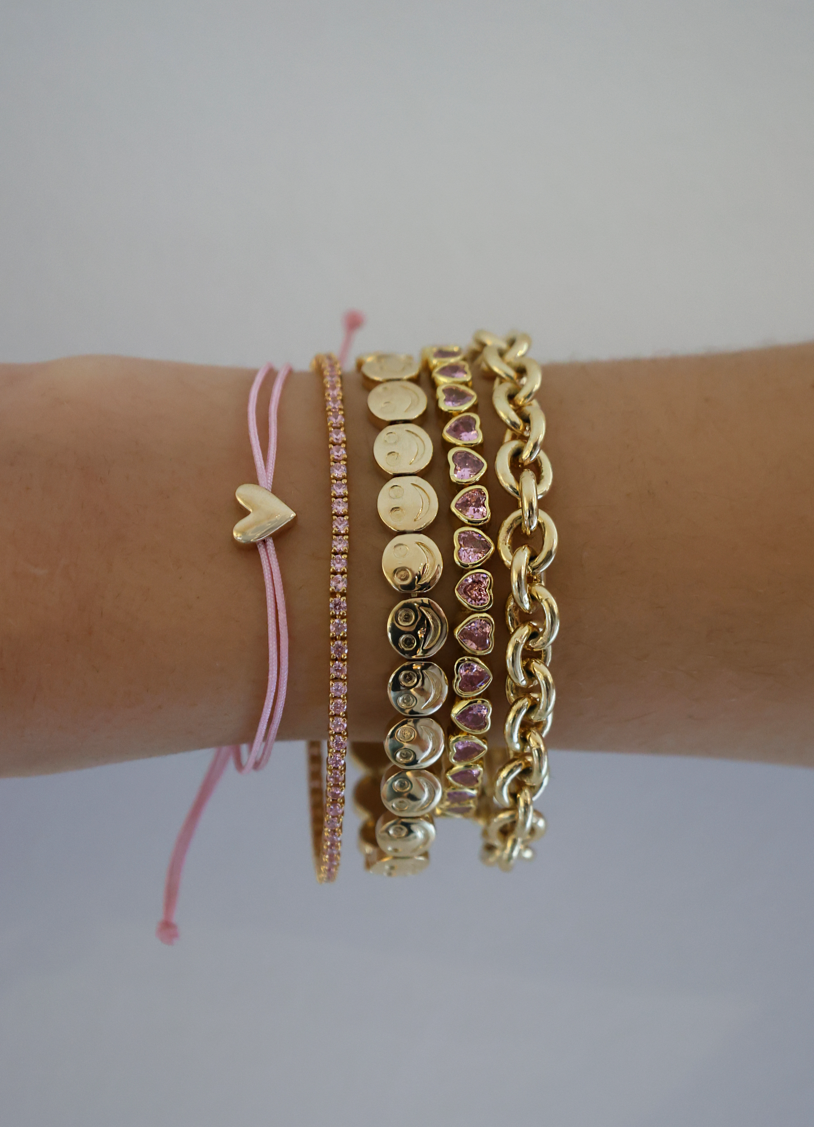 Introducing the latest addition to our Never Take Off collectionโ€” The Sweetheart! This bracelet features our beloved heart-shaped charm crafted in solid 14K yellow gold. Secured onto a double looped cord and featuring a sliding knot closure, ensures a comfortable fit that is adjustable between 6" and 9". Available in colours pink, red, and black.