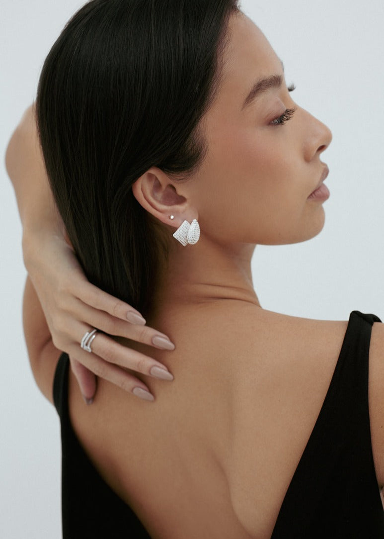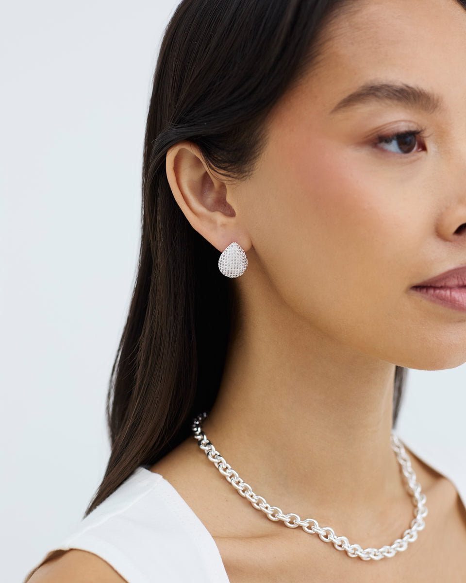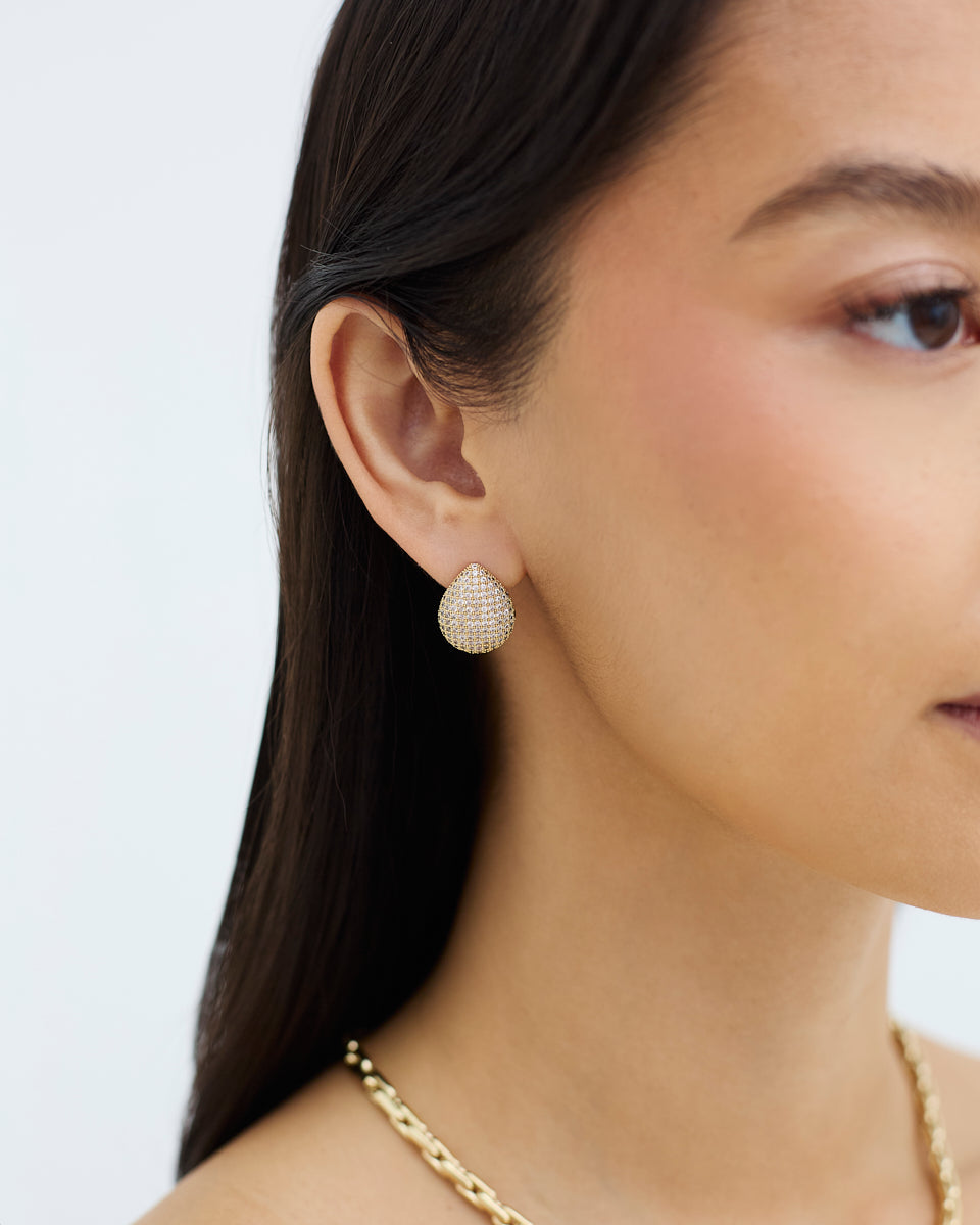 Make a statement with The Pavé Teardrop Earrings featuring micro pave set stones, available in both high-shine yellow gold and silver. 22mm long x 18mm at its widest point, with just the right amount of sparkle you can wear them from day to night without feeling weighed down.