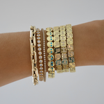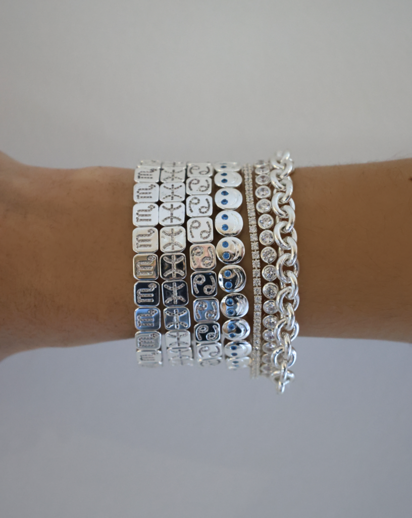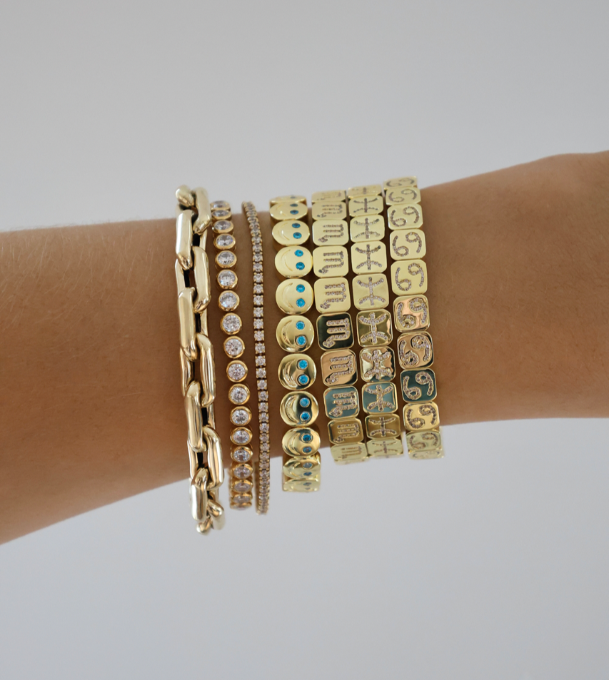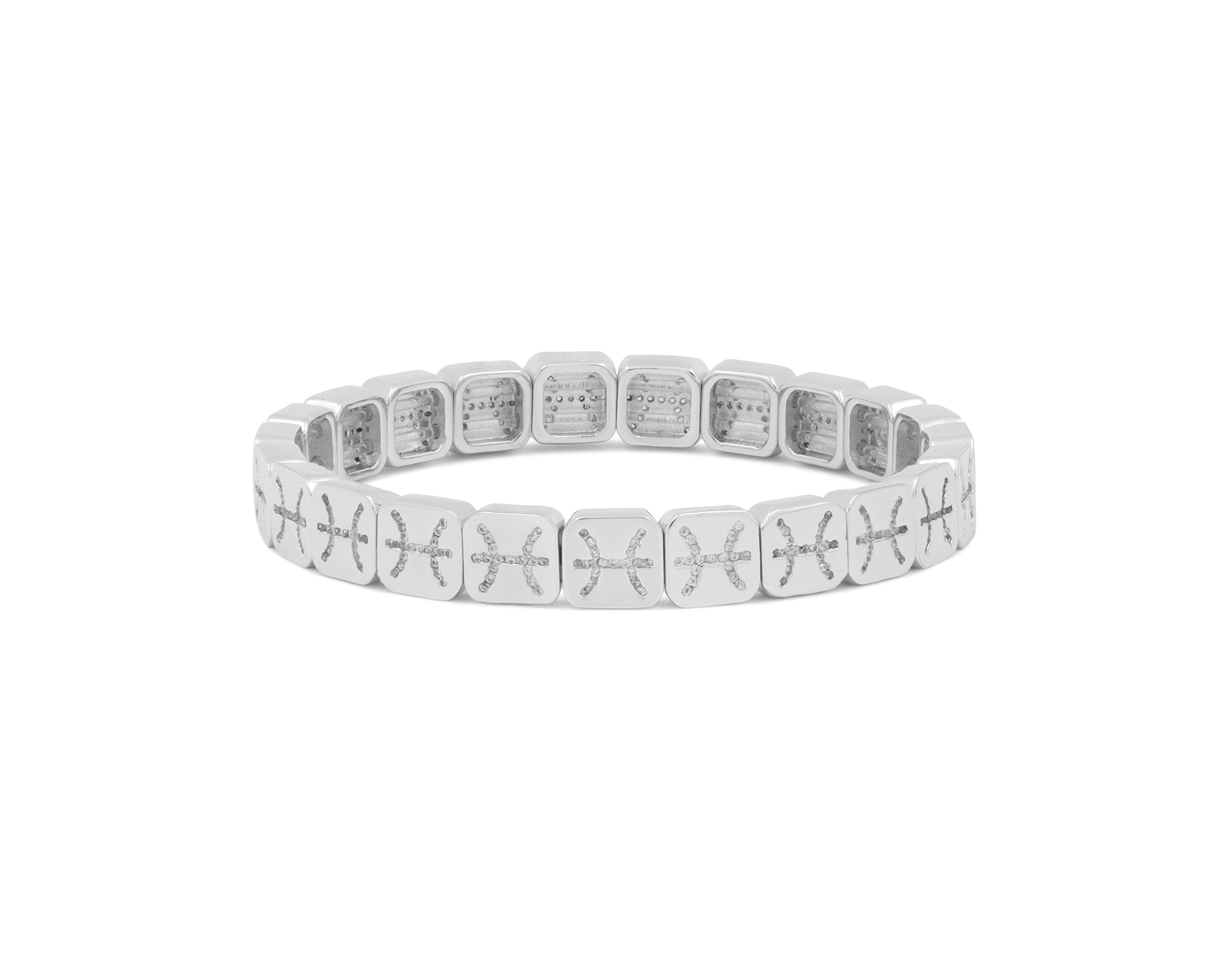 Introducing The Pisces Bracelet - the mutable water sign in the zodiac! Adorned with the fish symbol outlined with cubic zirconia stones in 18K yellow gold plating, this bracelet reflects the imaginative and compassionate nature of Pisces. Perfect for the empathetic and letting your inner dreamer flourish!