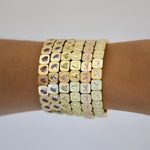 Get ready to fall head over heels with The Puffed Heart Bracelet! Featuring a raised puffed heart on each square bead giving the bracelet a sleek yet 3 dimensional look. Available in both yellow gold and silver, perfect for stacking with your other LG favs or wearing solo for a sweet statement.