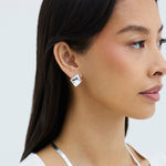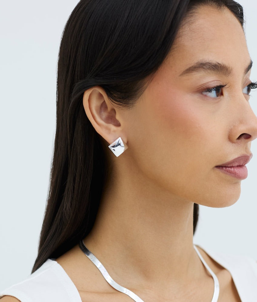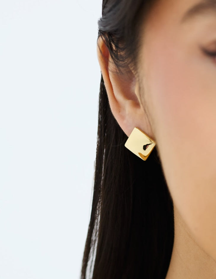 Add some edge to your look with The Princess Studs. These essential 15x15mm earrings feature a corner post for a unique diagonal wear. Available in yellow gold and silver, these elevated, glossy studs will make you look and feel your best.ย