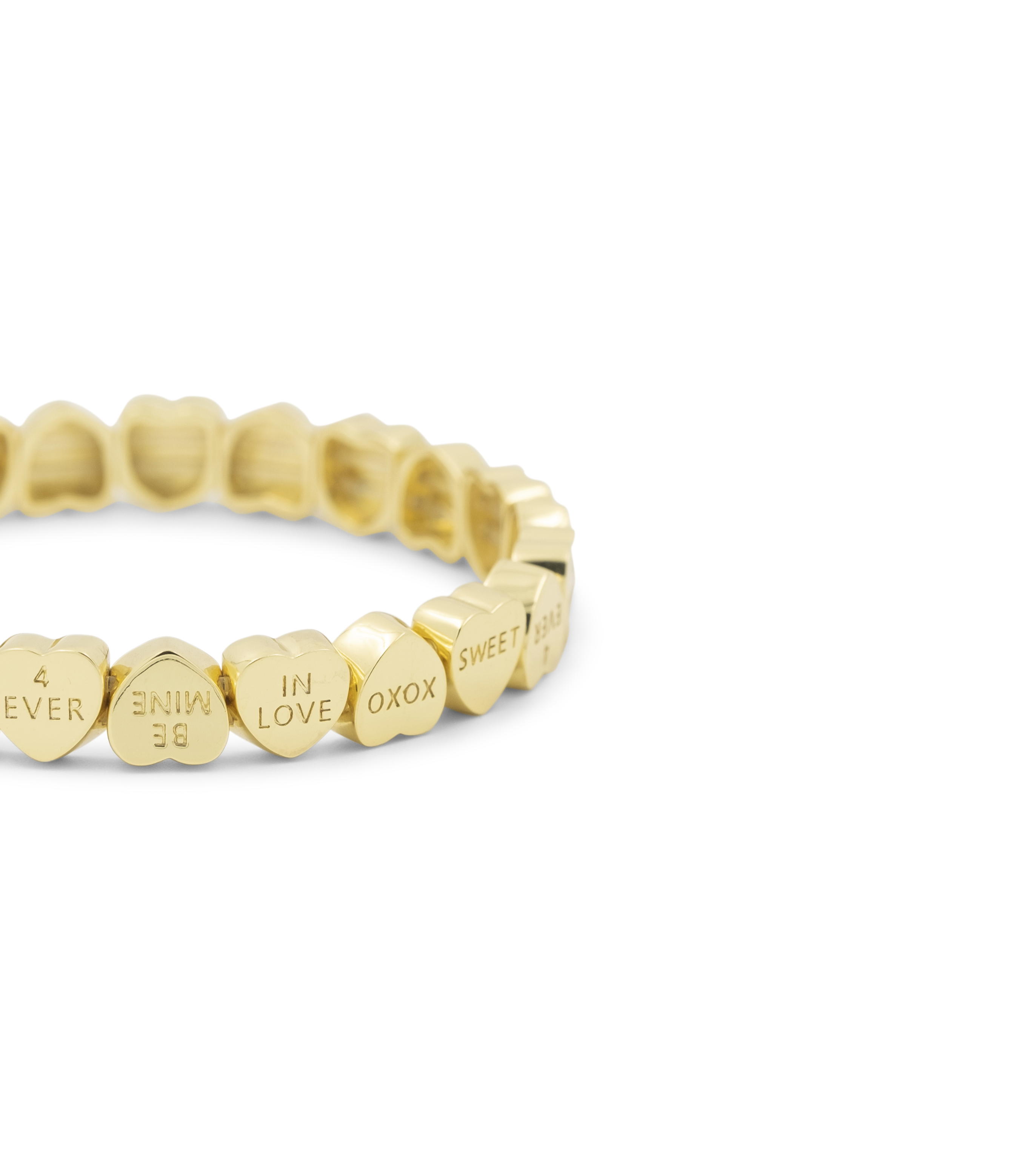 Introducing our sweetest bracelet yet! Inspired by the nostalgic charm of conversation hearts, this special edition Valentine’s Day bracelet is crafted with 18K yellow gold plating and features heart-shaped 7.5mm beads engraved with playful messages. Whether you’re gifting a loved one, your fav galentine or treating yourself, this bracelet is the ultimate way to say it all—without saying a word.