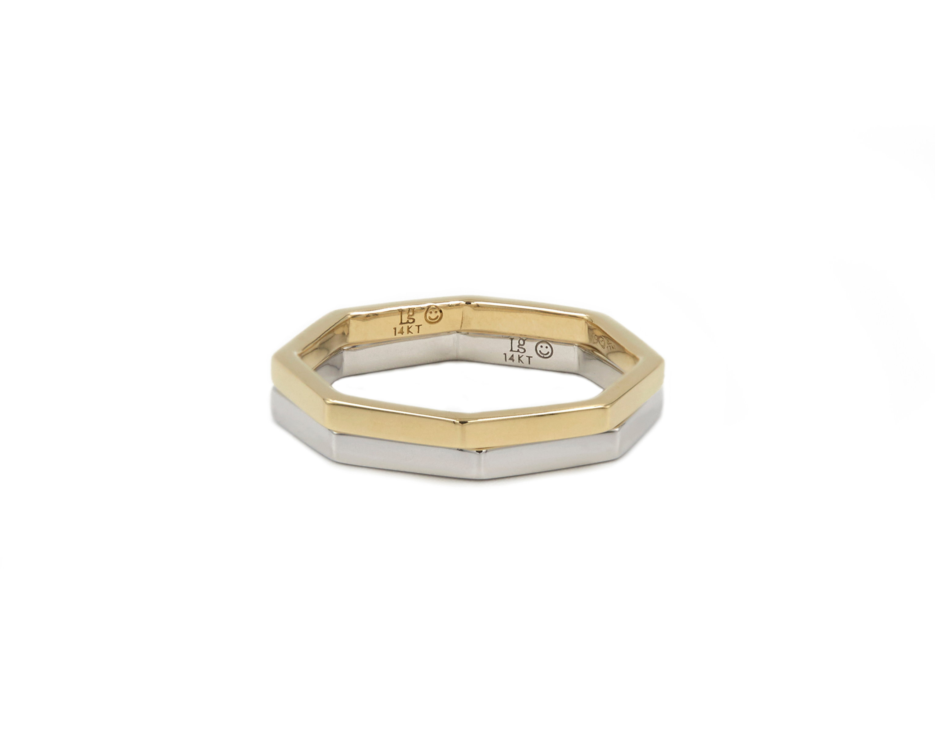 The Symmetrical Stacker โ€”ย a modern yet classic design with an added edge. Handcrafted in 14K Yellow or White Gold, its eight sleek lines representing symmetry & balance is sure to stand the test of time. Elegant on its own, or have the best of both worlds & pair it with THE DIAMOND SYMMETRICAL STACKER.ย