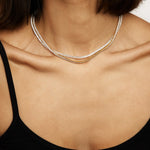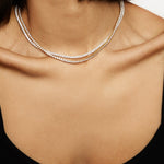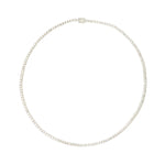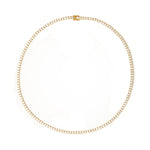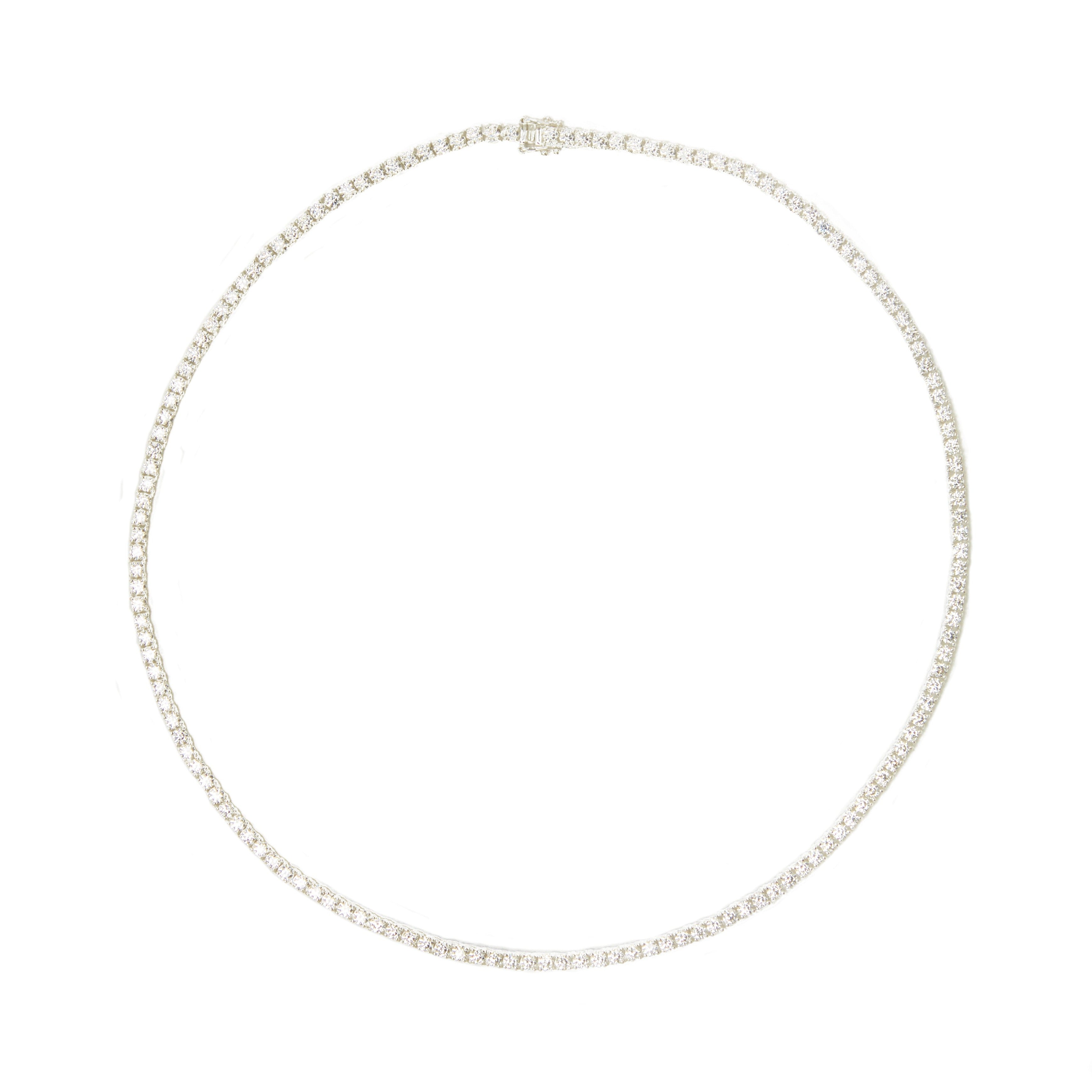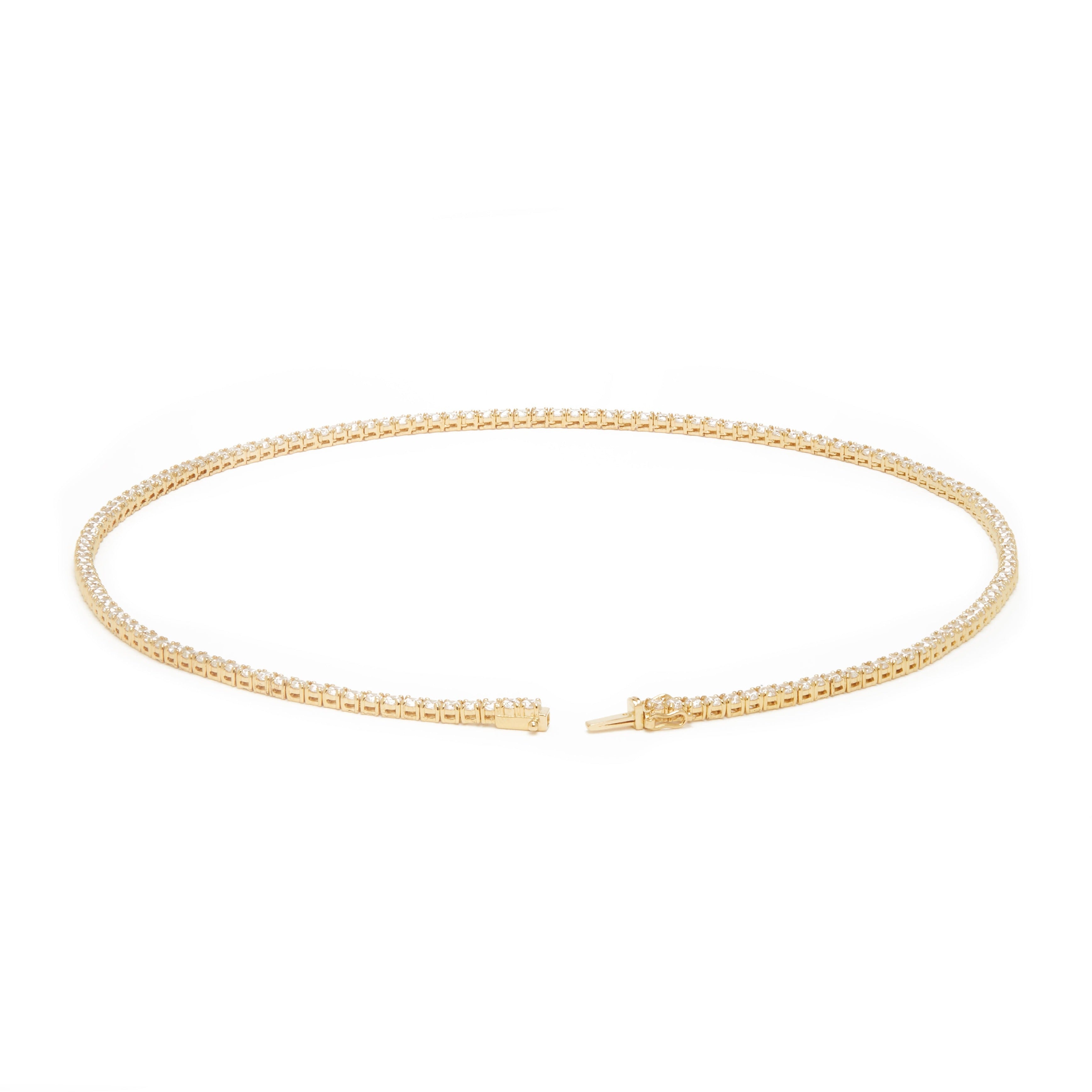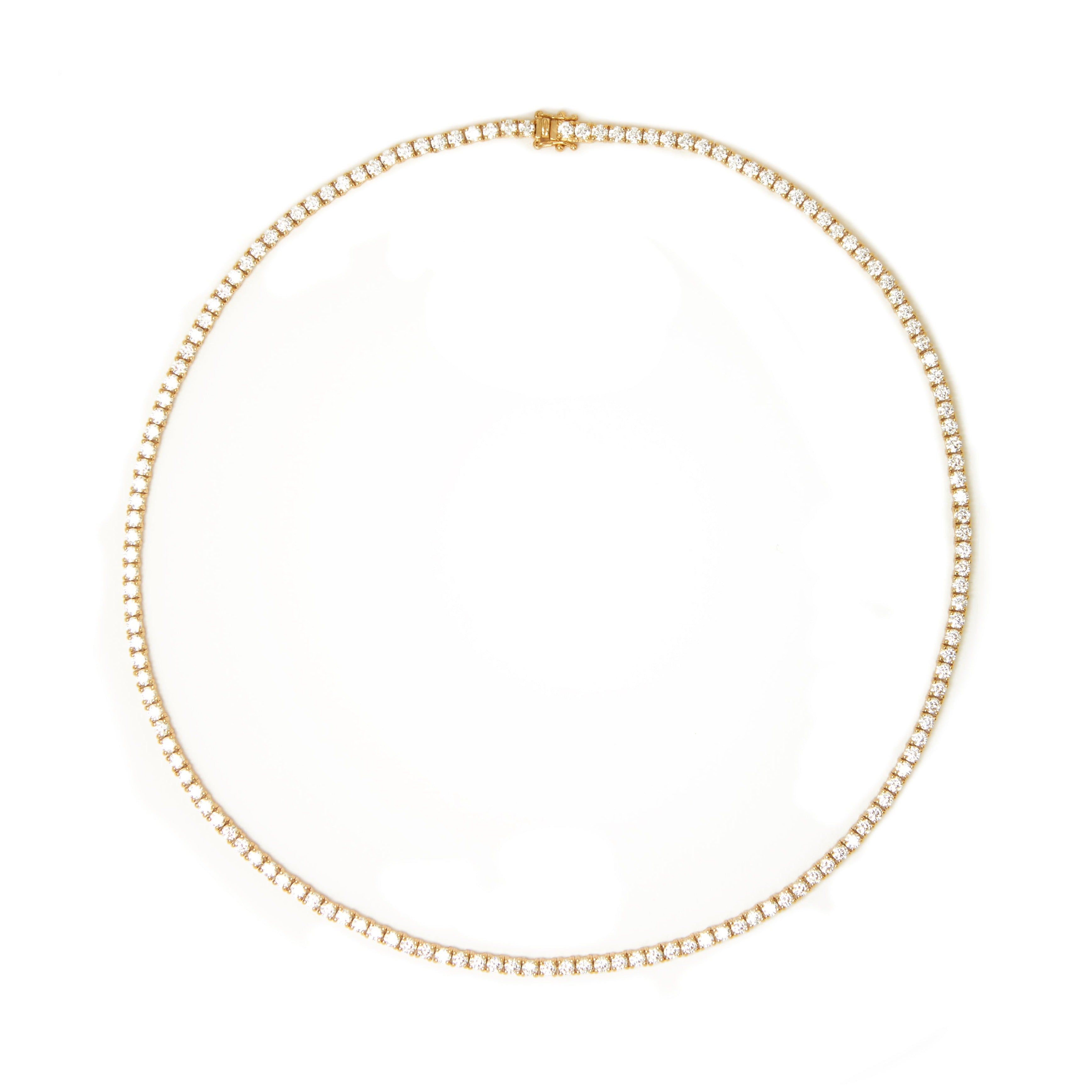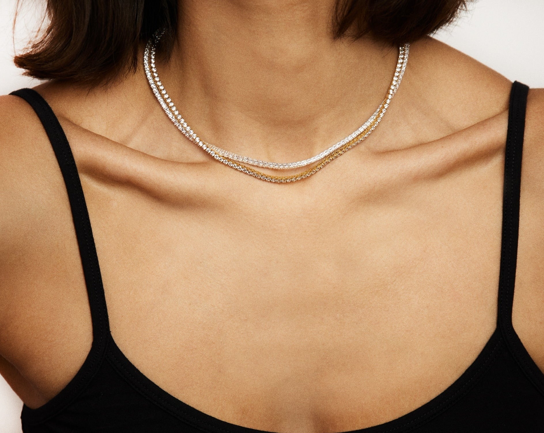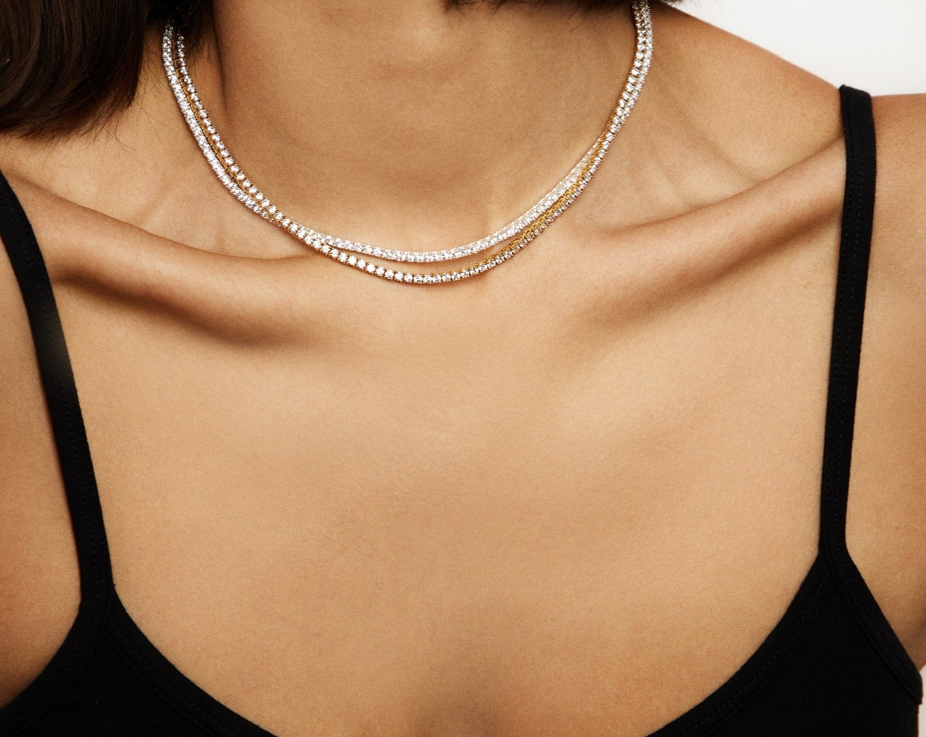 Meet our classic tennis necklace  an iconic silhouette sported by players on the court. Features a double clasp closure and AAA Cubic Zirconia stones. Available in Gold Vermeil and Sterling Silver.
