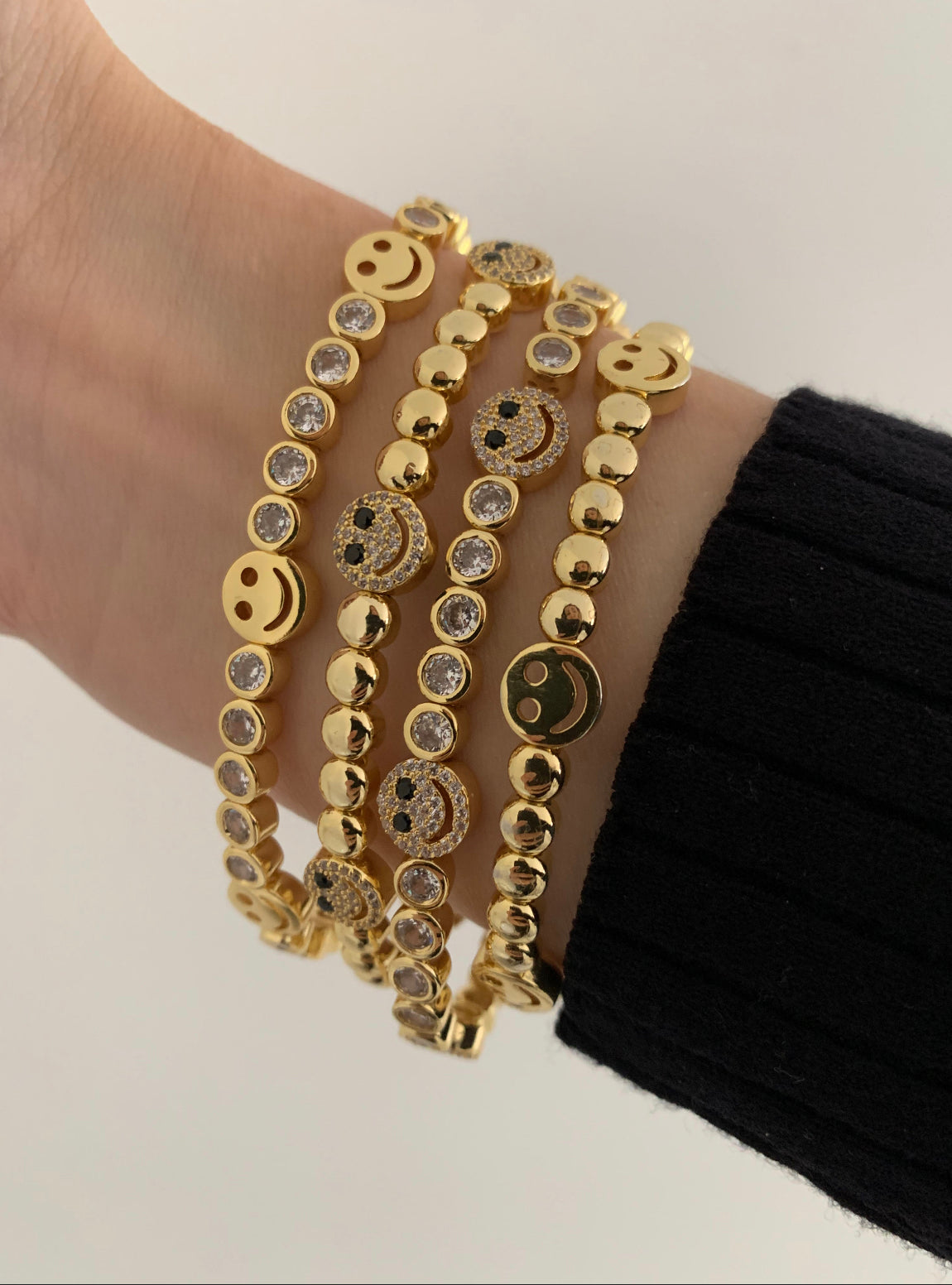 Introducing the 'Happy Face Mixer' Collection available in 4 styles. An iconic stretchy stackable wristband bracelet to elevate every look. Mix and match for the ultimate stack. Our mixer bracelet collection has a unisex fit.