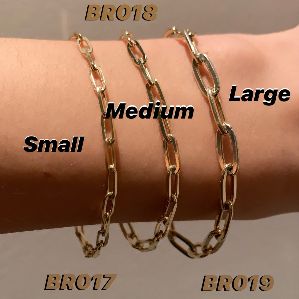 The largest of 3 sizes in our signature Gold Vermeil everyday paperclip chain bracelet.