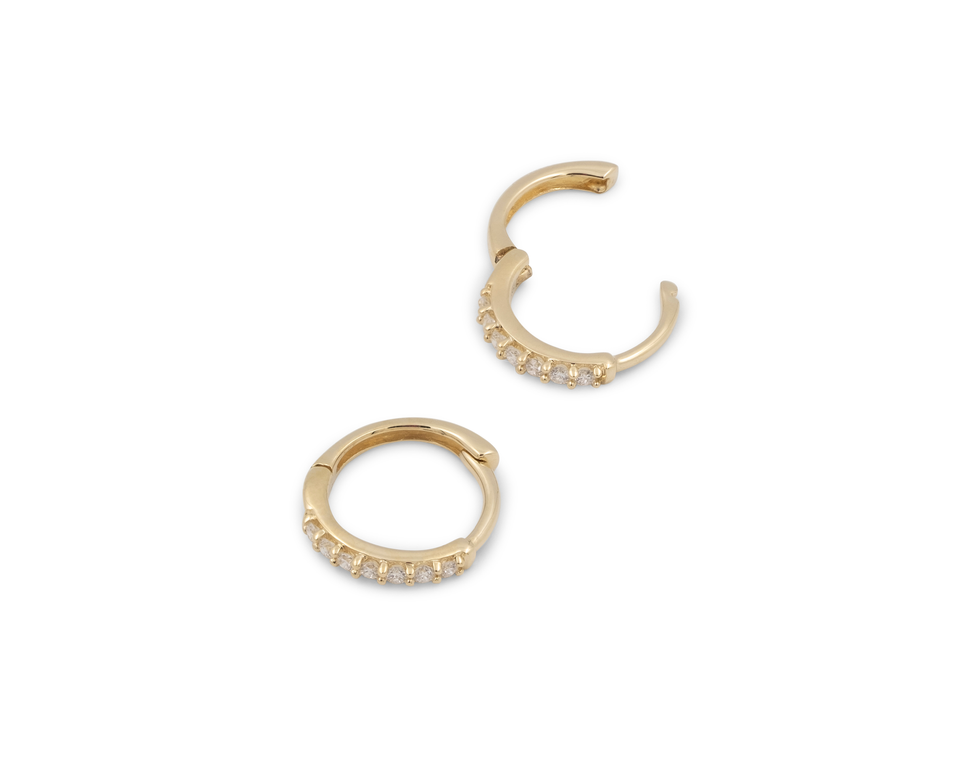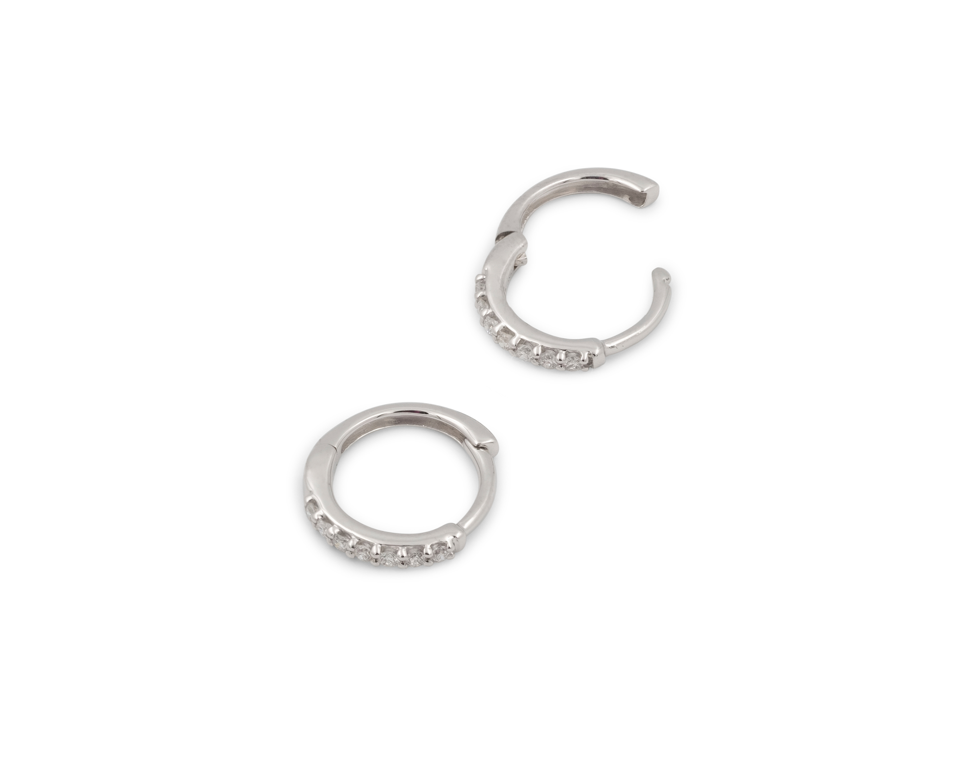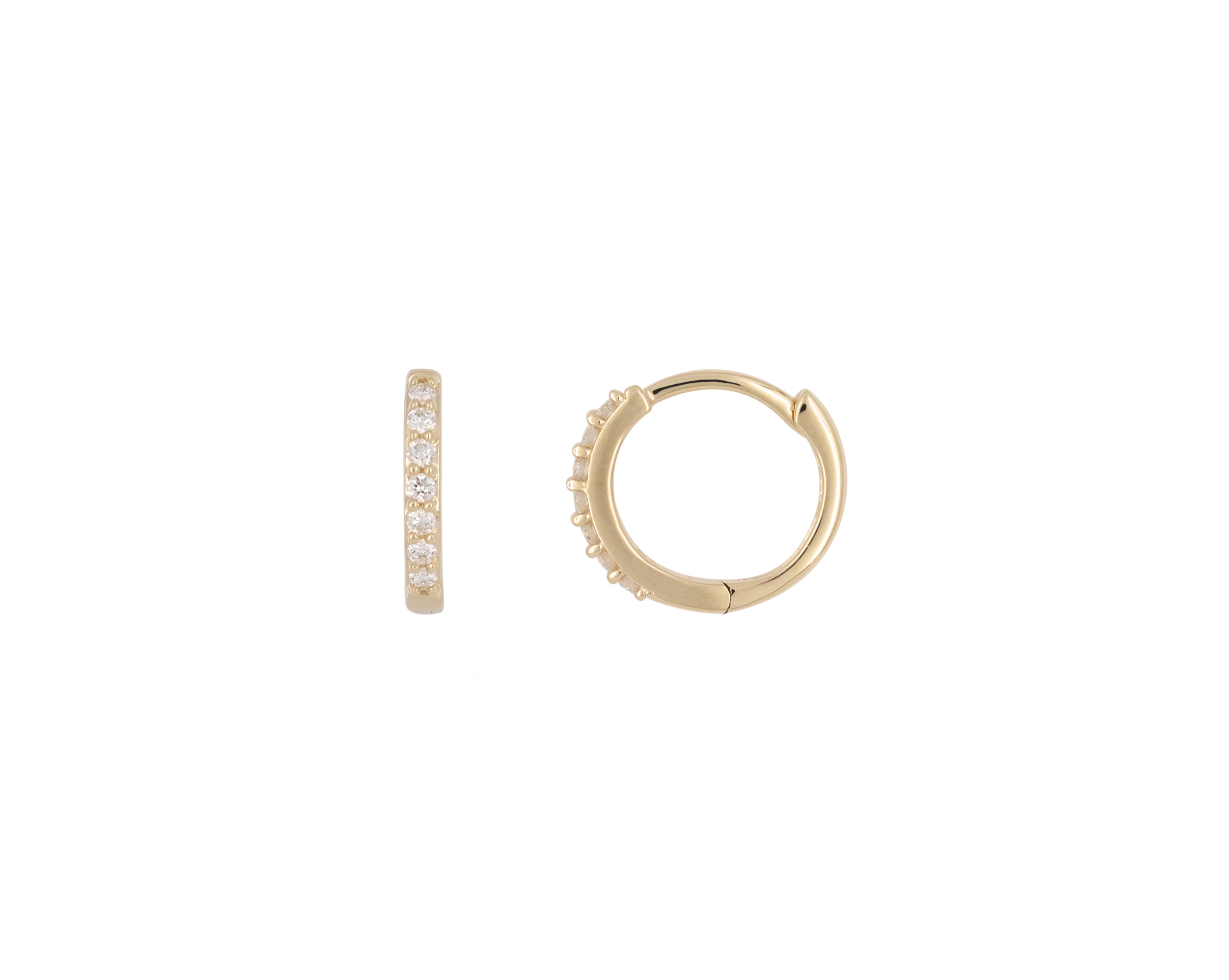 These classic diamond huggies are a timeless additionย to any ear stack.ย Perfectly hugs theย upper lobe or helix. Single cut diamonds give these huggies a much bolder look and feel. Purchase as a single or a pair.