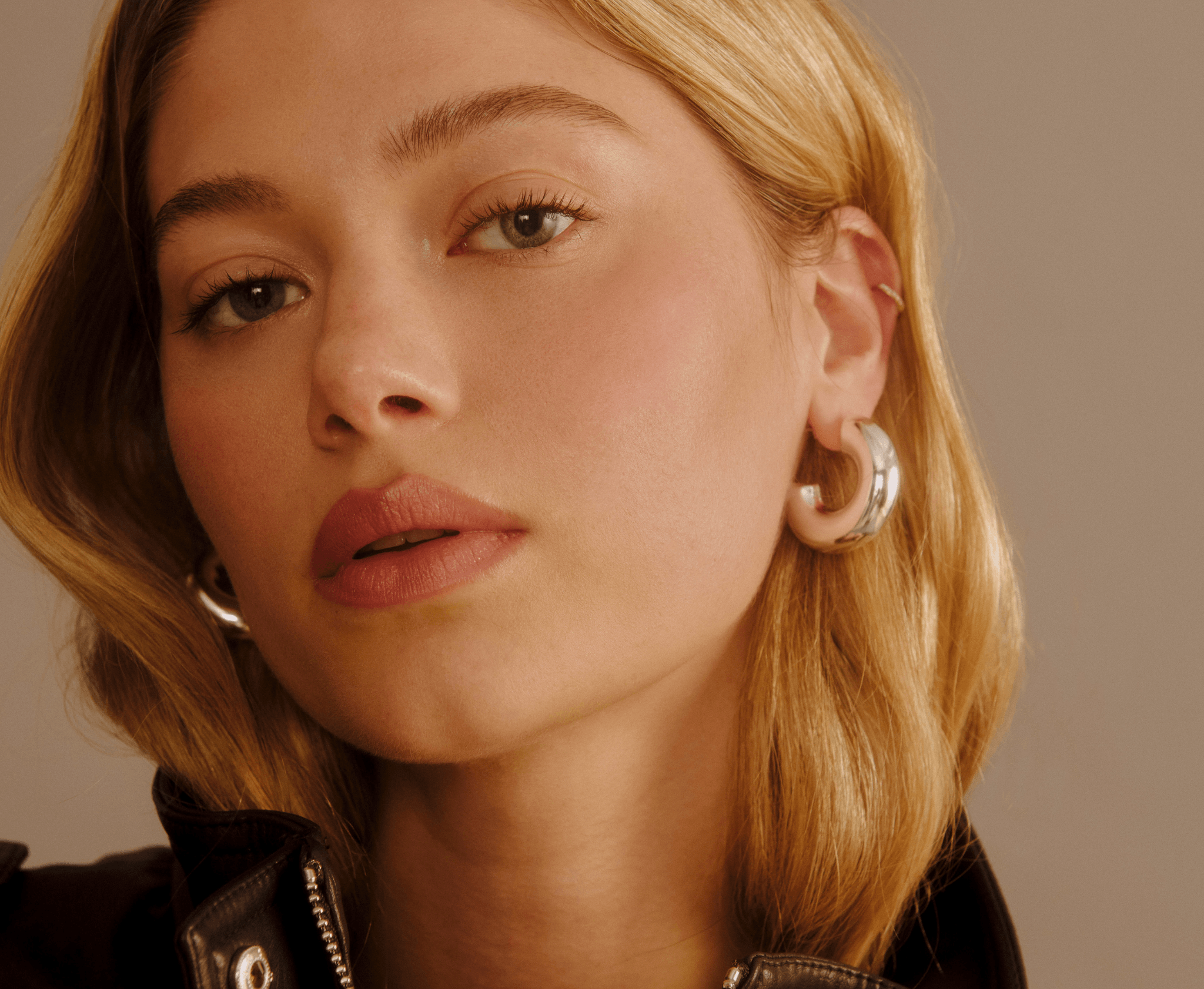 Elevate your look with these statement hoops. The Lisa Hoop is lightweight, perfect for day-to-night wear, and available in 18KT gold or silver plating with a comfortable post butterfly closure.