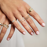 The dainty signet ring you've always dreamed of handcrafted in 14K gold with four prong, pavé set diamonds. A historically, classic design, this baby signet is so perfect, you'll never take it off— and you won’t be able to stop staring at it's beauty! Perfect for the pinky or any other finger too.