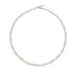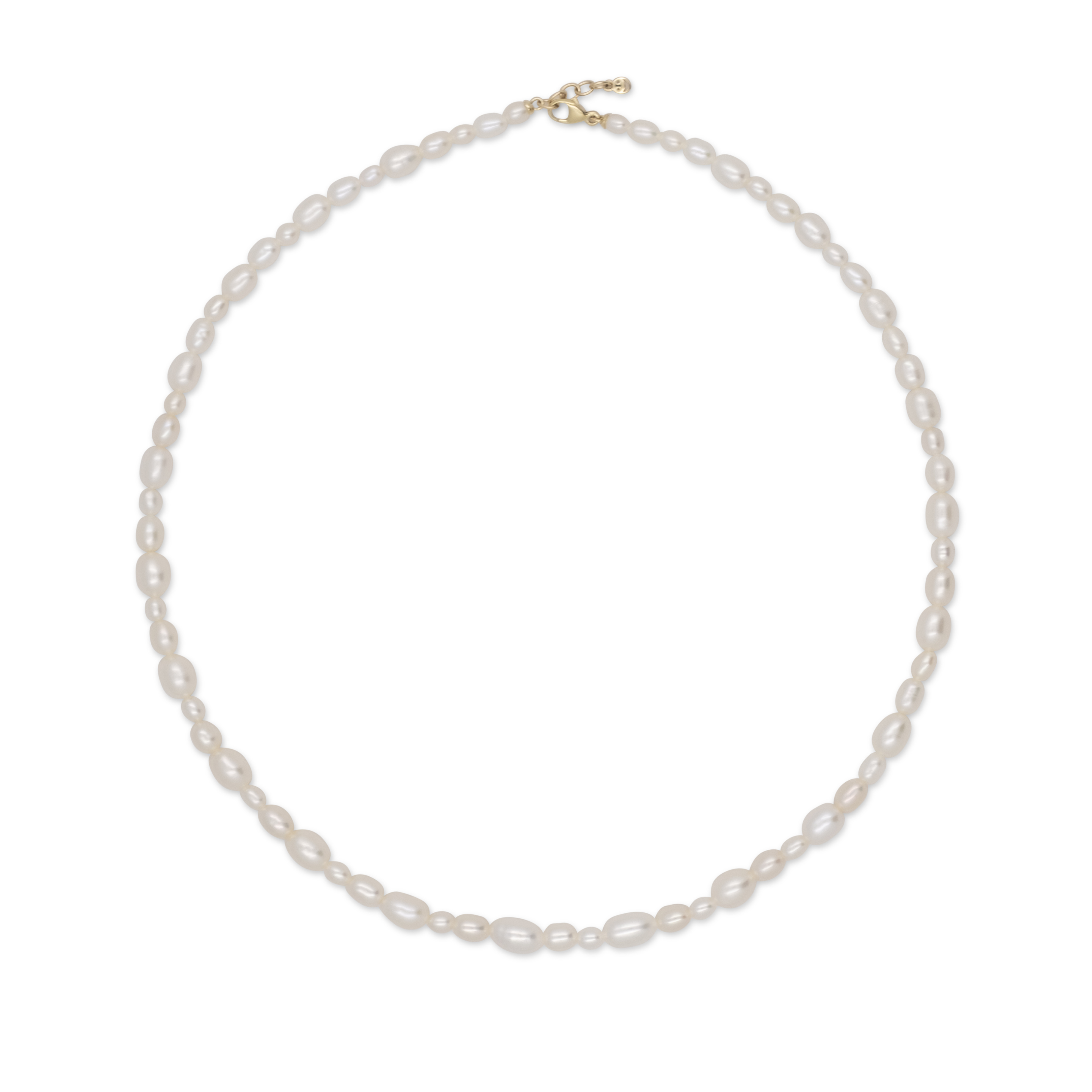 A modern take on a classic favorite—The Graduated Pearl Necklace is designed to stand out with its soft, tapered silhouette. Organically oval freshwater pearls subtly increase in size for an elegant, sculptural effect. Finished with a 10K yellow gold lobster clasp, a 3mm extender, and our signature 3mm happy face tag for that extra touch of charm.
